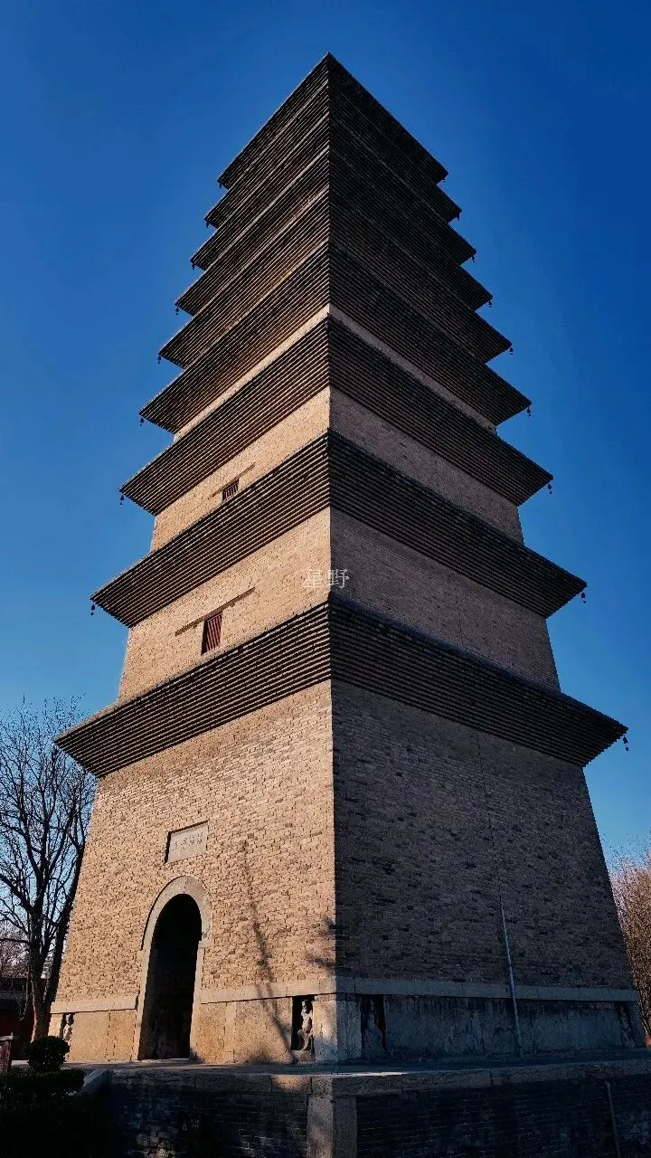 古称雁塔,俗称砖塔,正定四塔之一。位于法船殿遗址前西侧,是开元寺的主要建筑。始建于唐贞观十年(636年),高42.5米,是一座砖石结构的九级密檐式方塔。正方形塔基,塔身底层砌1米高石陡板,底层四角浮雕八躯力士,形神毕肖。正面门楣上端嵌清康熙元年邑人梁维枢题“须弥峭立”石额。二层以上塔身渐收,并于正面开一方形小窗,顶端塔刹,砖砌刹座,中间雕仰莲,金属刹杆,装四宝珠。塔身造型简洁古朴、稳重端庄。经清康熙年间大修,仍保留明显的唐塔风格。2005年9月,对塔进行了加固和局部维修,此次维修在塔刹宝珠内发现金银器、玉器、铜器、玛瑙、丝、绢、经书等各类文物千余件。