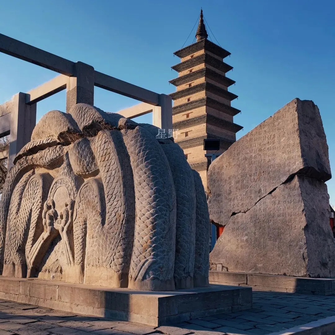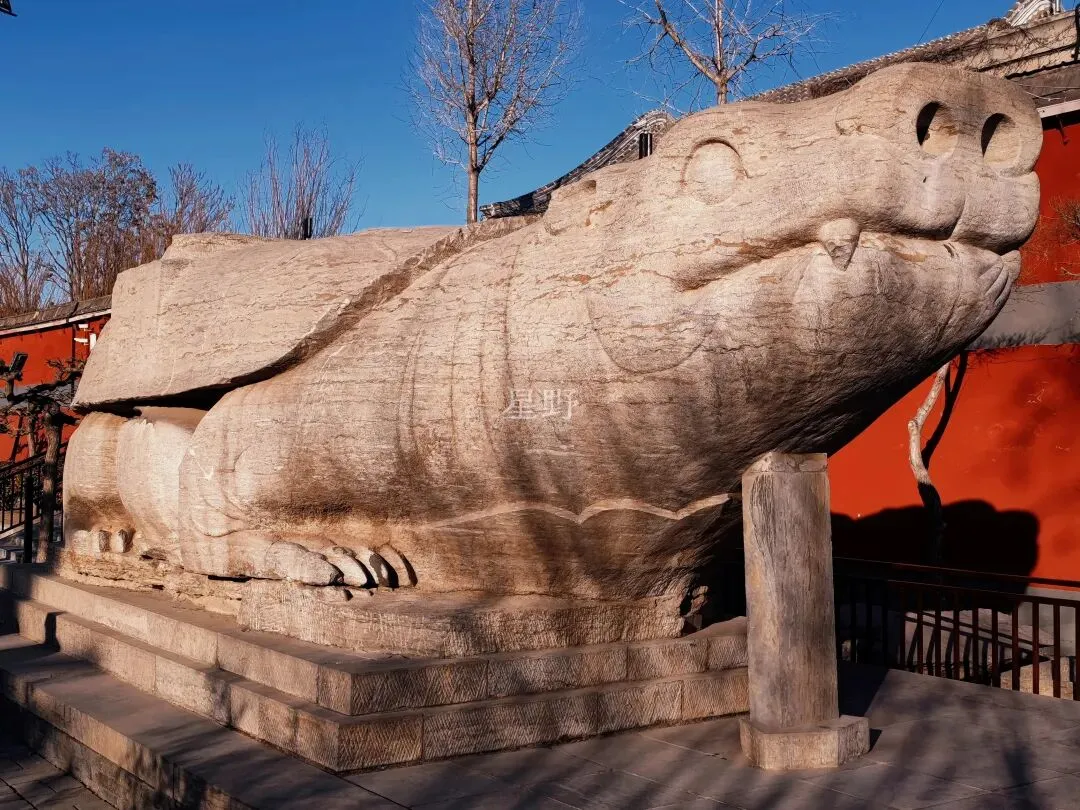 此赑屃(bì xì)系五代时期成德军节度使安重荣德政碑碑座。青石质,残长8.4米,宽3.2米,高2.6米,重107吨,体量之大位居全国同类石刻之首。2000年6月出土于正定县府前街路西,同年8月移至开元寺内。同时出土的还有碑首、碑身残段,均是研究当时政治、军事、历史极其珍贵的实物资料。