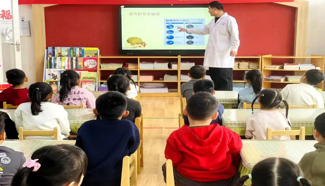 活动伊始,针对幼儿年龄小、好奇心强的认知特点,医护人员采用童趣化的语言和趣味问答的形式,为孩子们带来了一场生动有趣的耳健康科普讲座。通过形象的比喻和互动,医护人员深入浅出地讲解了耳朵的构造与功能、噪音对听力的危害、耳道的正确清洁方法以及防水防伤等日常防护知识,引导孩子们从小养成不随意挖耳、远离噪音环境、正确清洁耳道的好习惯。讲座过程中,医护人员还现场示范了简单易学的护耳操,手把手教孩子们通过按摩穴位保护耳朵。孩子们在轻松愉快的氛围中积极参与,不仅学到了实用的护耳知识,更在寓教于乐中掌握了科学的护耳方法。讲座结束后,医护人员随即为在园的幼儿提供了免费的听力筛查服务。他们利用专业设备,耐心细致地为每一位孩子进行检查。