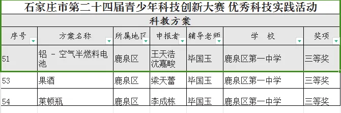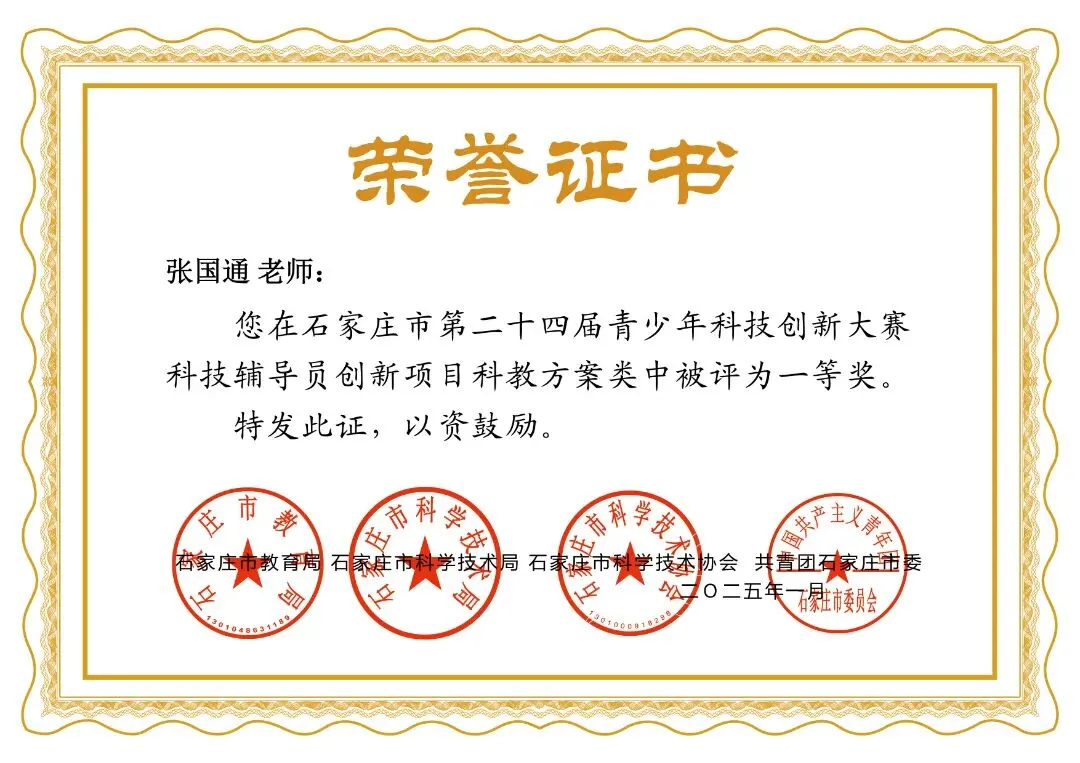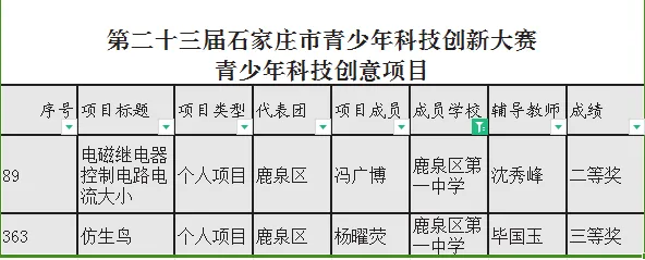 近期,石家庄市第二十四届科技创新大赛评选结果公布,我校师生取得可喜成绩。
