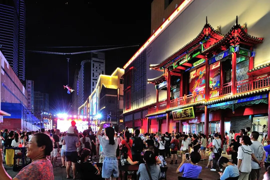 湾里庙步行街在传承传统文化的同时,也注重文化的创新与发展。挖掘整理、开发利用体现步行街 400 多年来商贸文化历史的明清石碑,彰显商贸文化内涵。在历史文化片区集中恢复中华老字号,引进多位国家级工艺大师工作室,如郭海博铁板浮雕、周淑英剪纸、郝友友烙画等,让游客在繁华的商业街区近距离体验河北非遗技艺。街区还举办了各类文化活动,如非遗井陉拉花、高跷、秧歌等巡游表演,以及“画说河北”书画展等,充分展现街区特色。湾里庙步行街不仅保留了石家庄的历史文化和传统商业,还积极引进国际品牌和文化娱乐类项目,如红糖 Live house 的摇滚演出、二次元 Live show 等,为街区增添了国际化的元素。