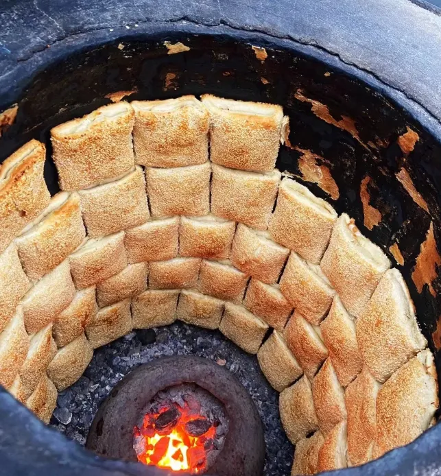 中午得尝尝这里的“缸炉烧饼”。这东西讲究,长方形的,面上撒满了芝麻。刚出炉的时候最妙,外皮酥脆,咬下去“咔嚓”一声,里面滚烫的面香“呲”一下冒出来,混着椒盐的咸香,烫得你直吸气又舍不得停。它是贴在陶瓷大缸内壁上烤熟的,带着一股子泥土和火炭的倔强香气。