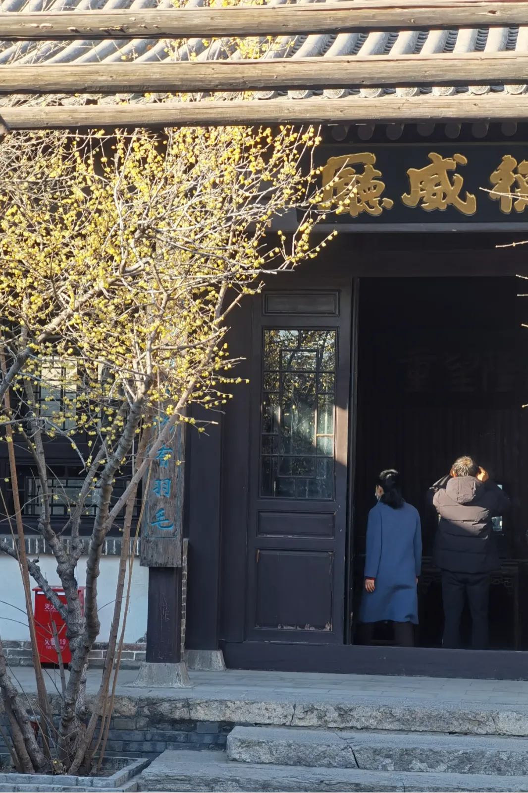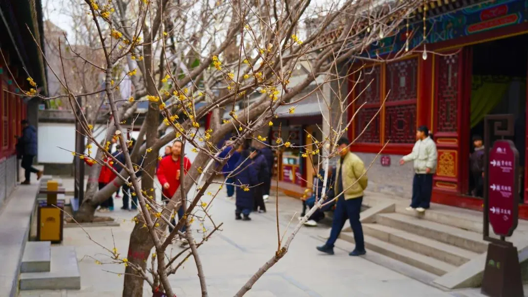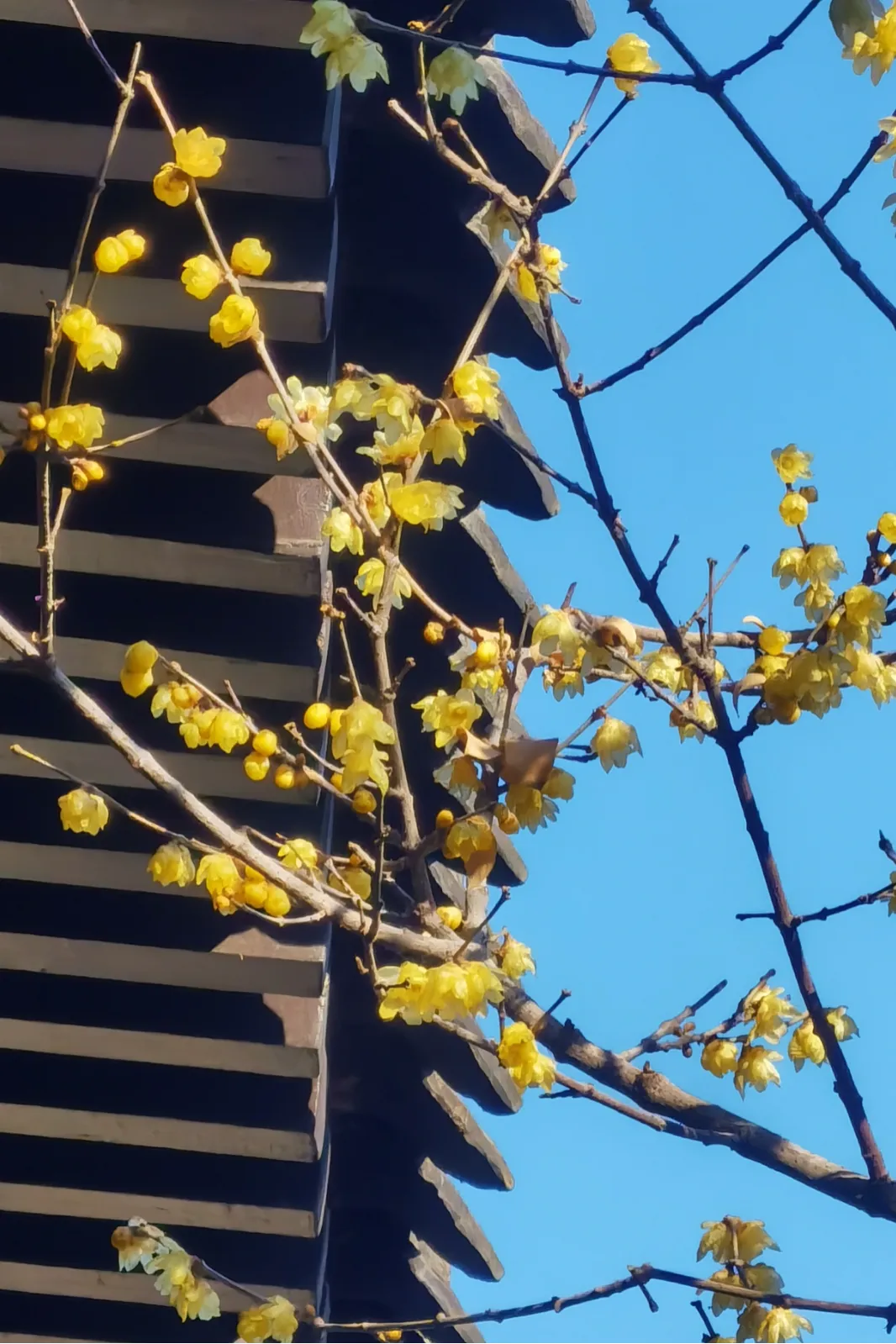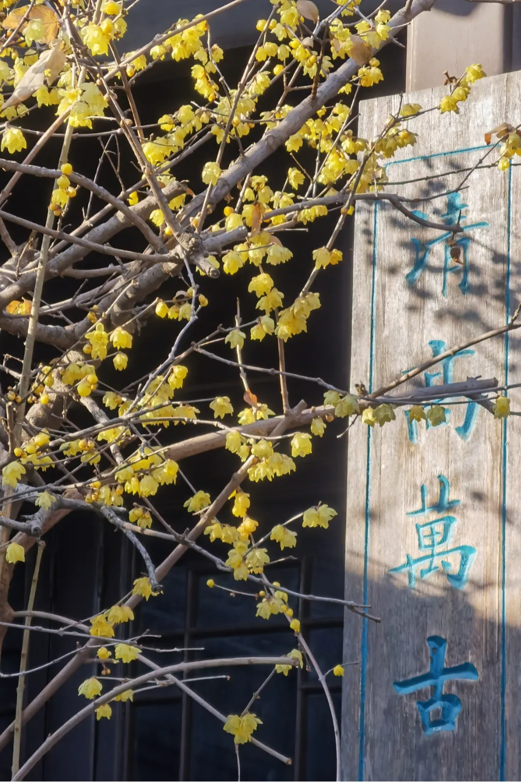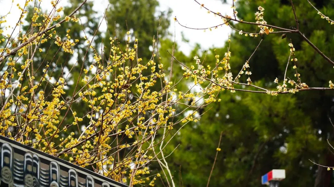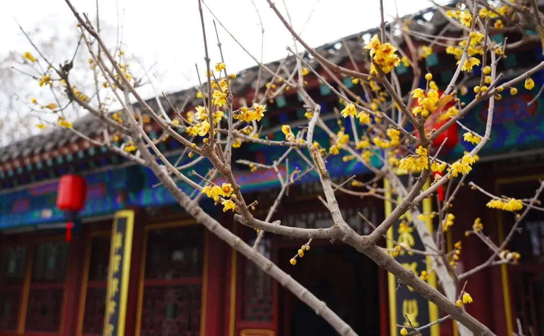 这里的蜡梅与古色古香的建筑相映成趣