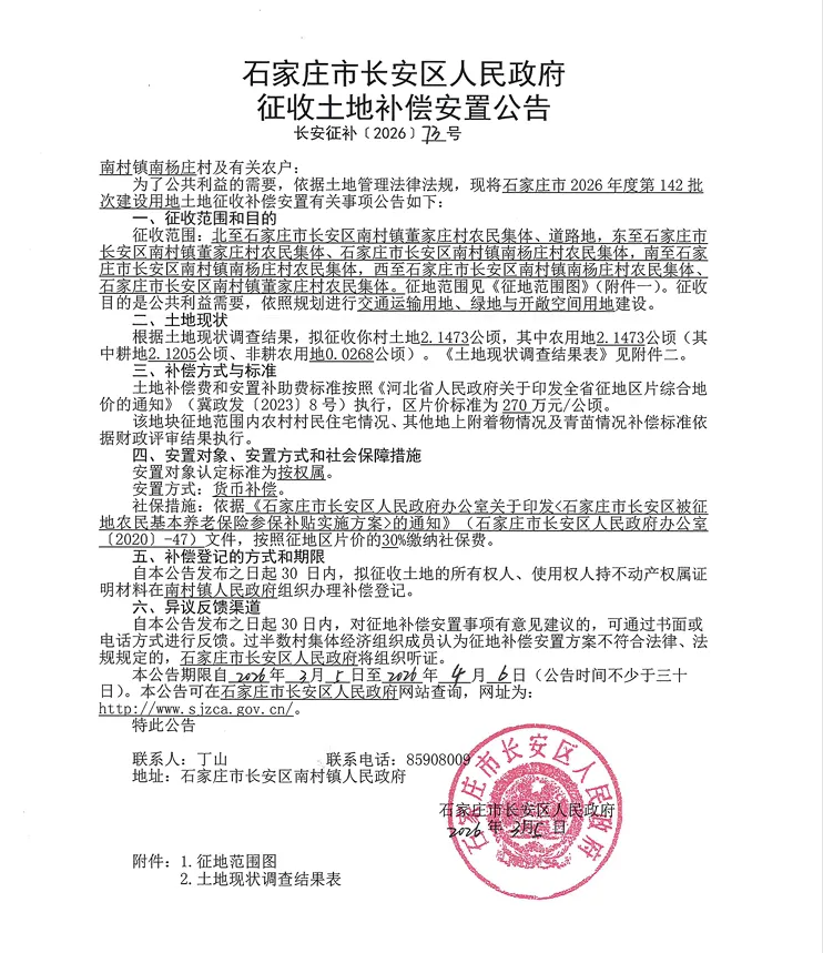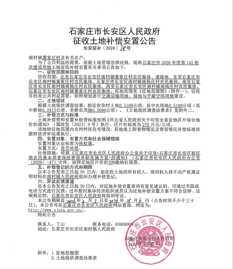 >石家庄征收土地补偿安置公告