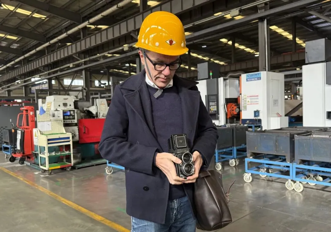 而塞巴斯蒂安则无法掩饰内心的激动,这场景他不仅感兴趣,也完全没有见过。硕大的厂房,一排排的大型数控机床,再到忙碌的工人,还有车间里的柔美光线,冬日从高处天窗撒下的一束束耶稣光,他按耐不住了,掏出皮包里的禄来相机,拍摄起来。
