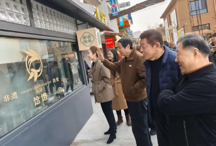 参观塔元庄乡与集特色美食步行街的非遗产品售卖点