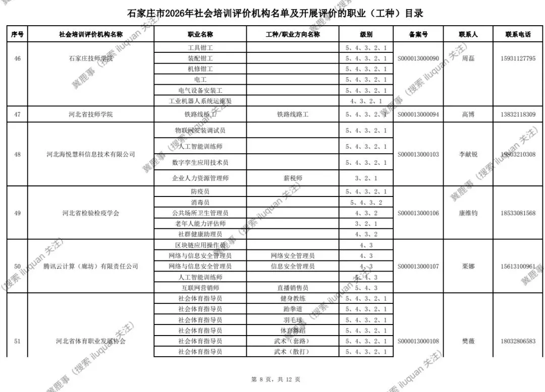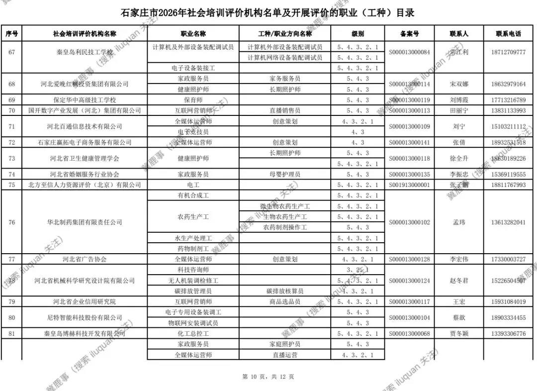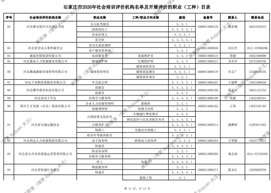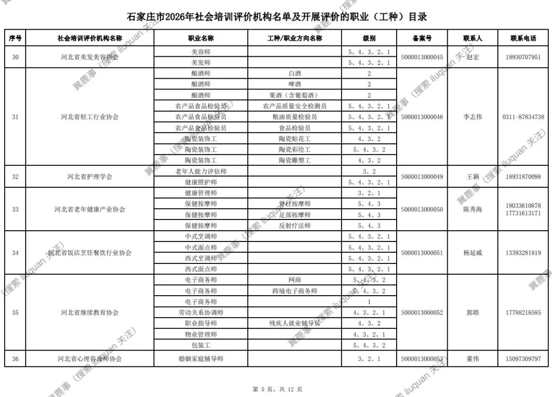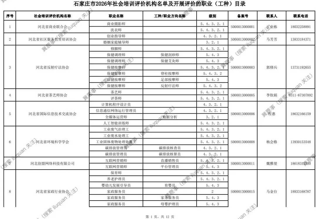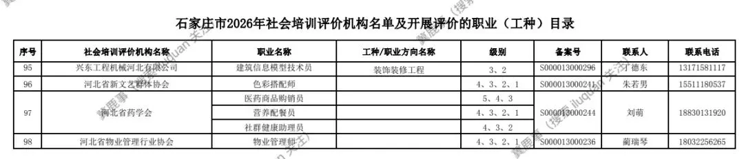 附件:石家庄市2026年社会培训评价机构名单及开展评价的职业(工种)目录