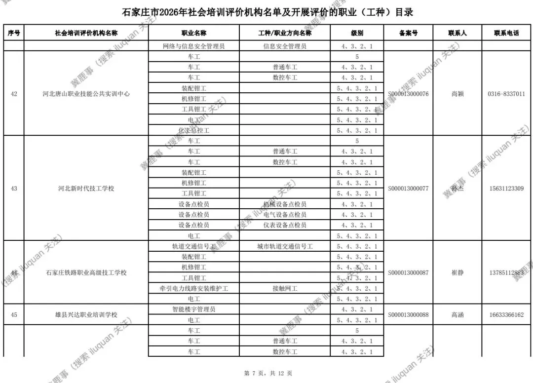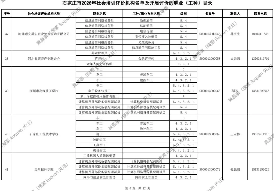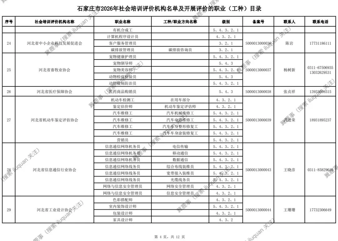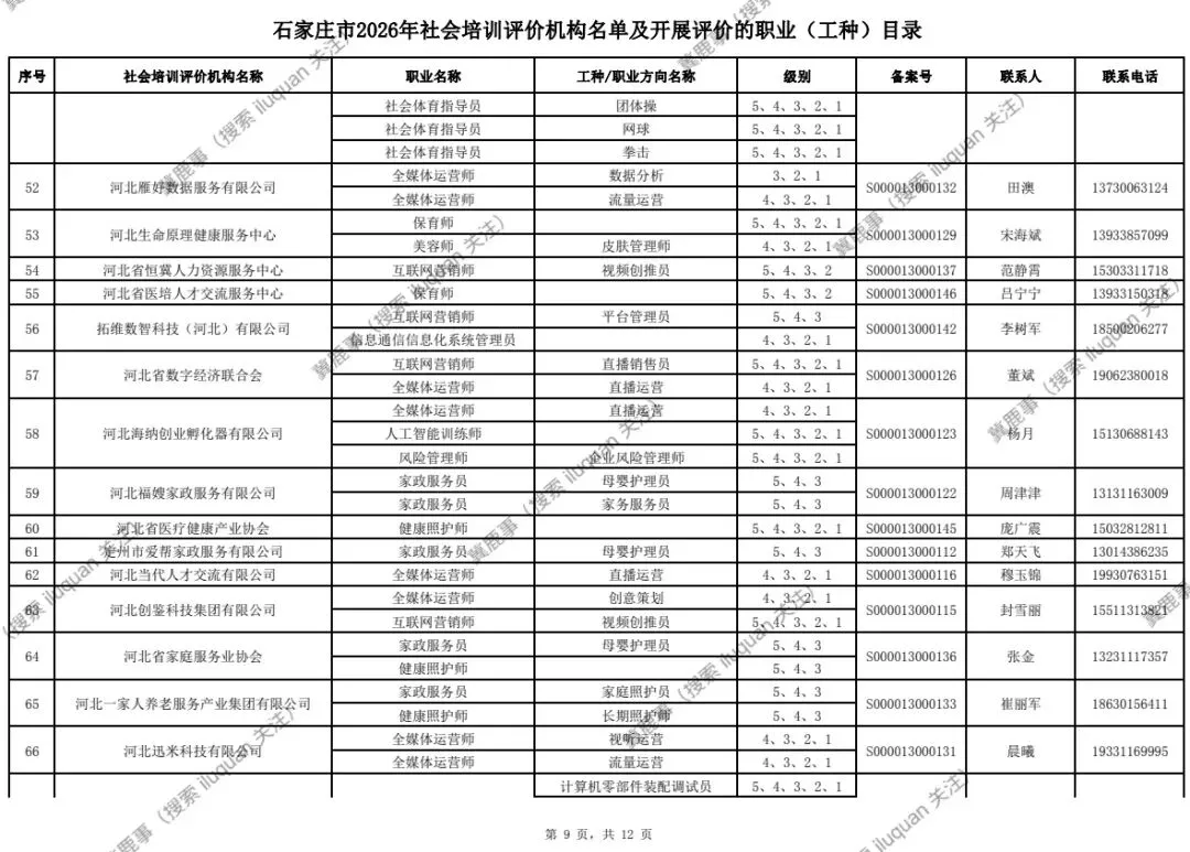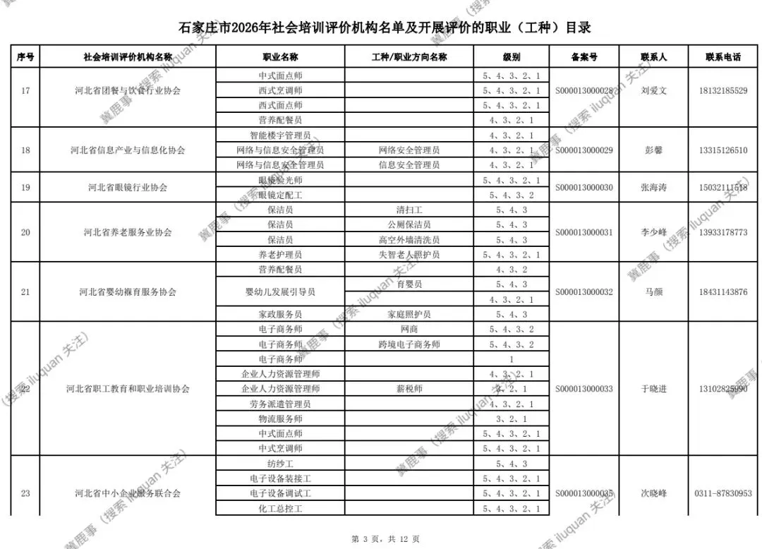 附件:石家庄市2026年社会培训评价机构名单及开展评价的职业(工种)目录