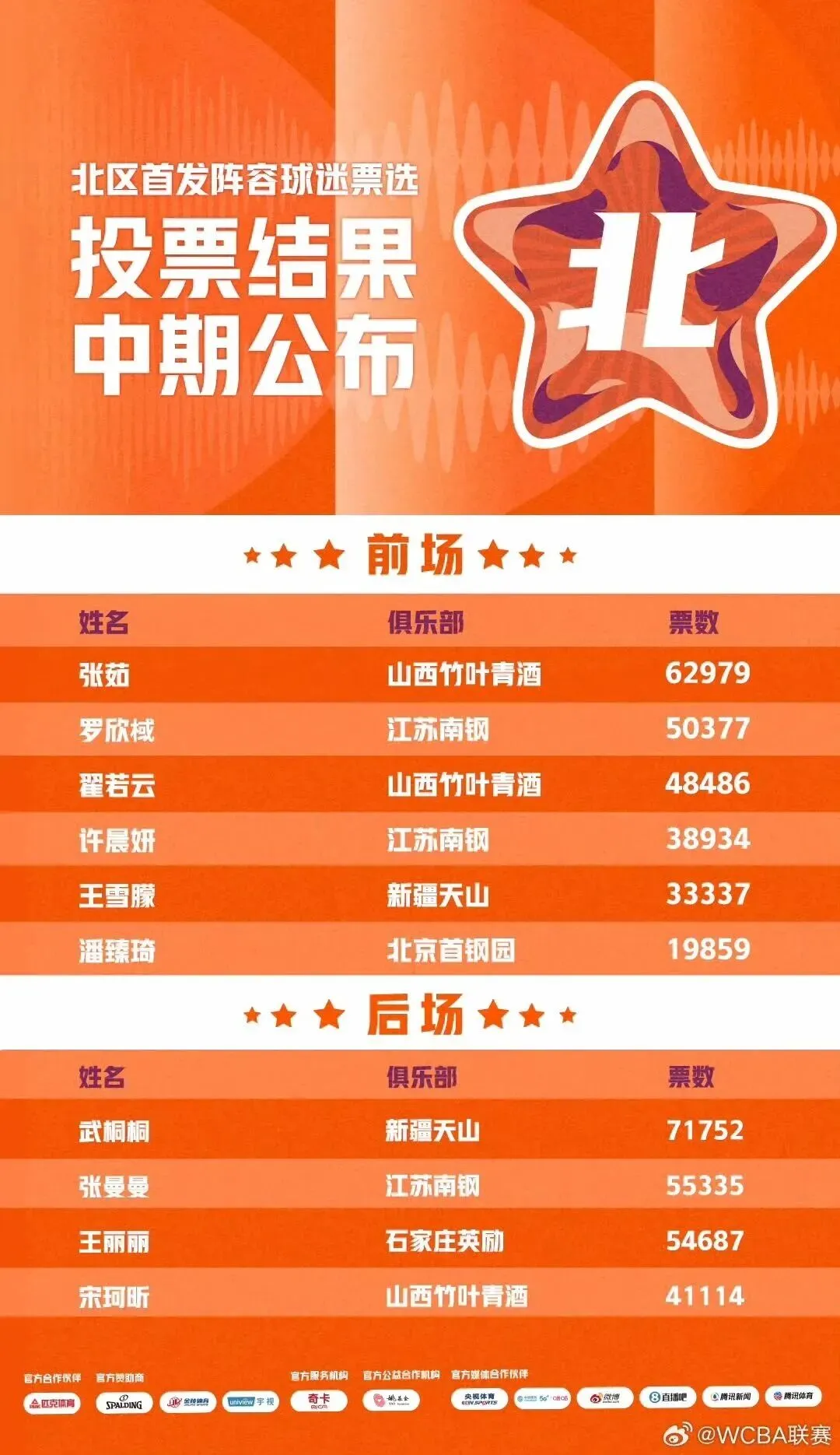 ✅ 投票规则:每日可投 1 次,北区阵容需选 5 人(前场 3 名 + 后场 2 名),王丽丽、彭晓彤均为北区后场人选,记得同时勾选两位!