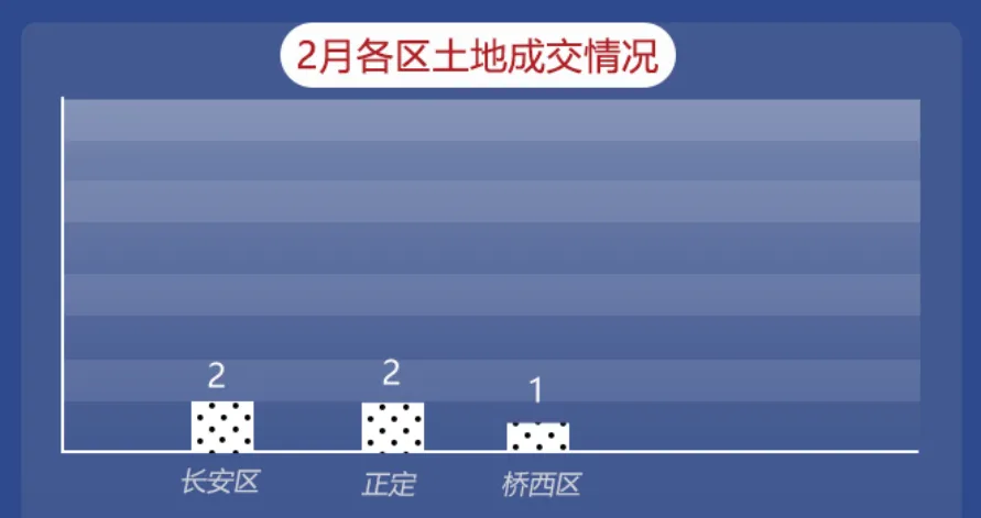 2026年2月,石家庄市(含正定县)共成交土地5宗,含2宗住宅用地、3宗商业用地,总面积约168891.26平米(约合253.34亩),总成交价约117660万元。