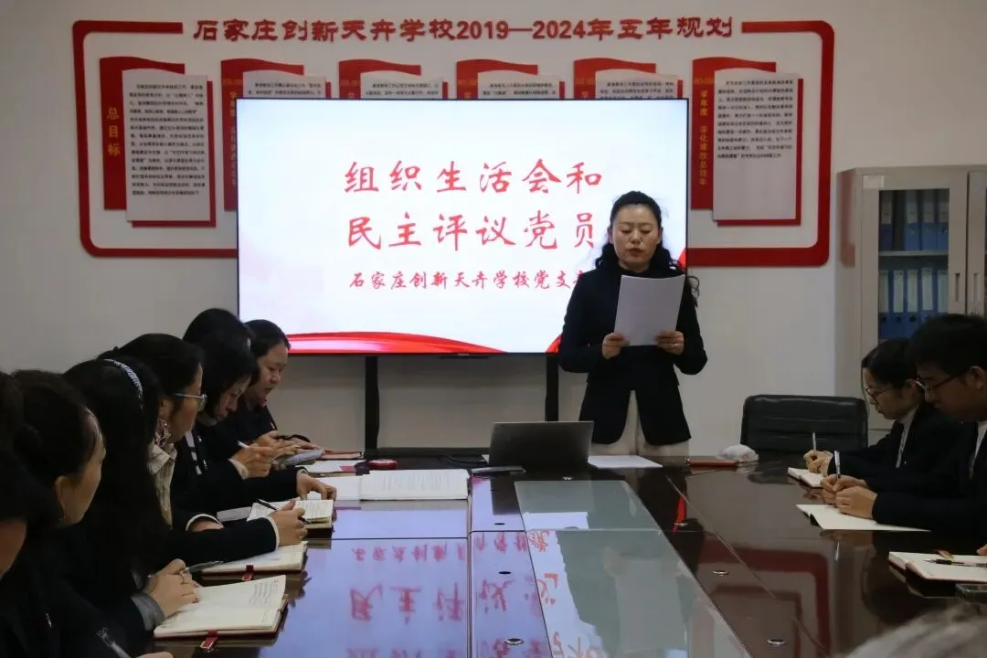 3月11日,石家庄创新天卉学校党支部召开2025年度组织生活会暨民主评议党员大会,桥西区教育局督学展静莅临会议并指导工作,全体党员参会。胡志民、李海滨同志列席会议。会议由党支部组织委员耿邵巍主持。