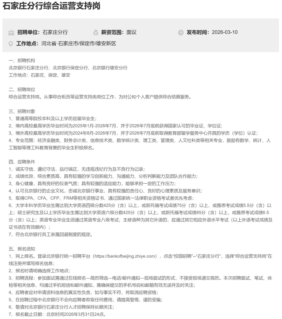 1412人!中国建设银行2026年度春季招聘公告发布!