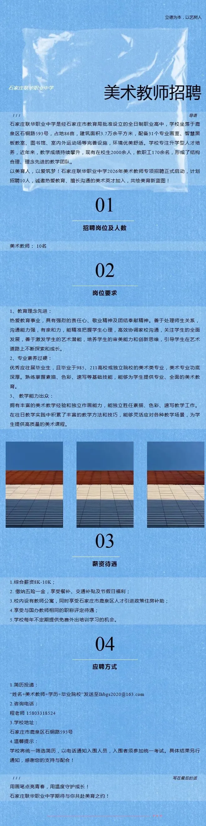 >月薪1W!石家庄联华职业中学2026美术教师招聘公告