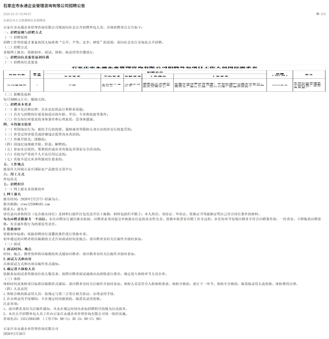 招聘工作坚持德才兼备的用人标准和"公开、平等、竞争、择优"的原则,面向社会实行市场化公开招聘。(二)招聘方式