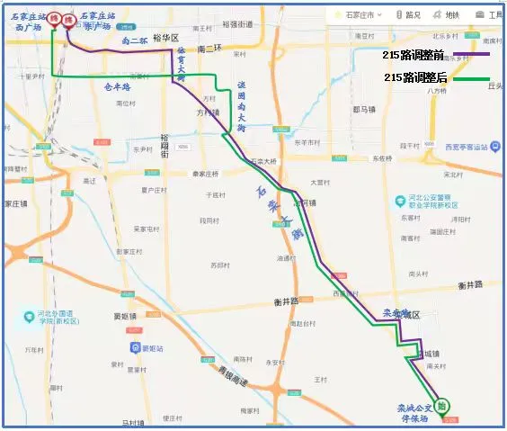 始发站栾城公交停保场不变,终点站由石家庄站东广场调整为石家庄站西广场。