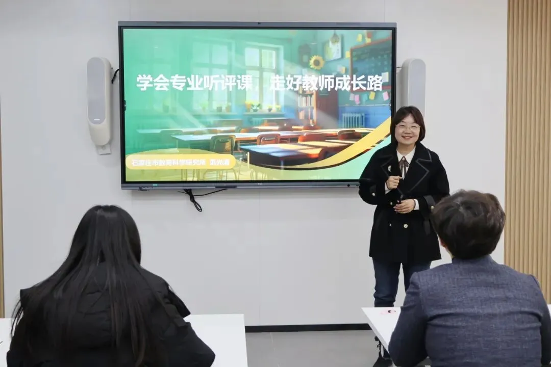 讲座伊始,范老师深入浅出地阐释了最好的听课不是流于形式的“笔尖记录”,而是坐在学生中间,看见真实的课堂发生;优质的评课并非表面夸赞或刻意“挑刺”,而是以专业视角深度参与,既肯定亮点、提炼经验,更直指不足、给出方向,为全体教师厘清了专业听评课的核心逻辑与价值导向。