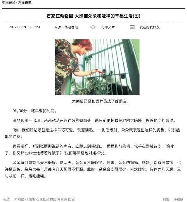 石家庄饲养员:“朵朵每个月总有几天不舒服.原来朵朵的妈妈优优、姥姥英英都有肠胃病,也许是遗传”