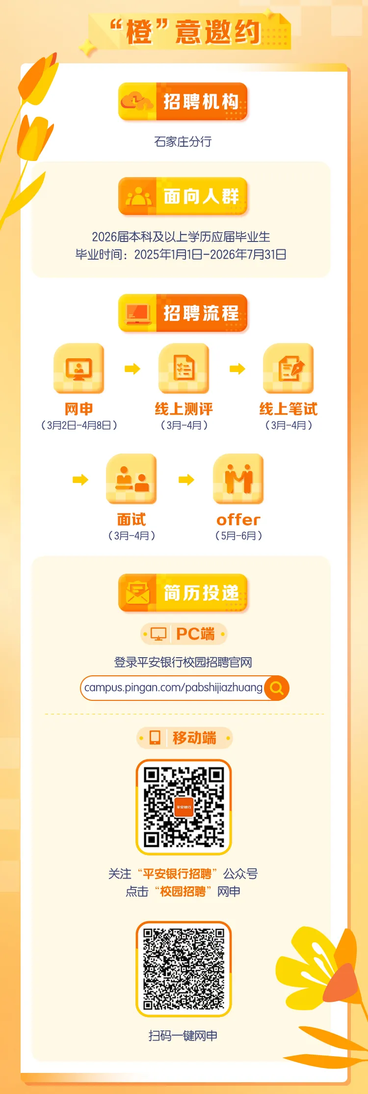 石家庄 | 平安银行石家庄分行2026届春季校园招聘