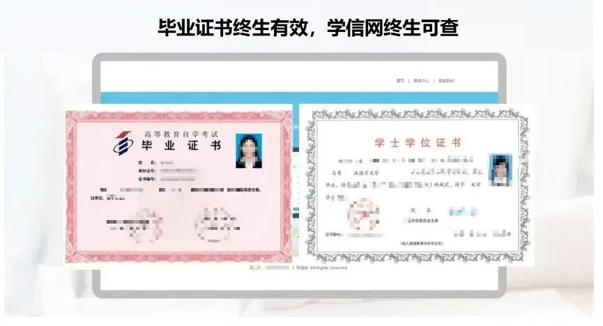 毕业时由相应专业主考院校和主考委联合颁发毕业证书、学士学位证书。国家正规学历,国际认可,享受普通高等院校毕业生同等待遇。毕业证书经由电子注册,中国高等教育学生信息网(http://www.chsi.com.cn)官网查询。