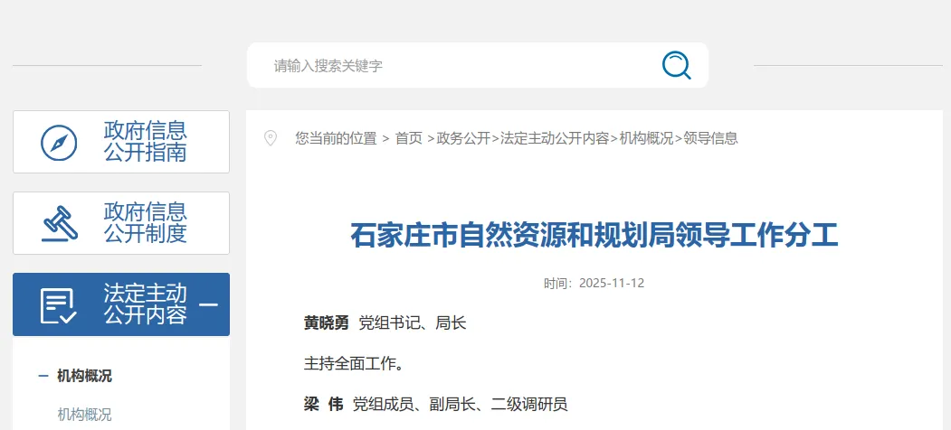 石家庄市自然资源和规划局领导工作分工(15名,2025.11.12)