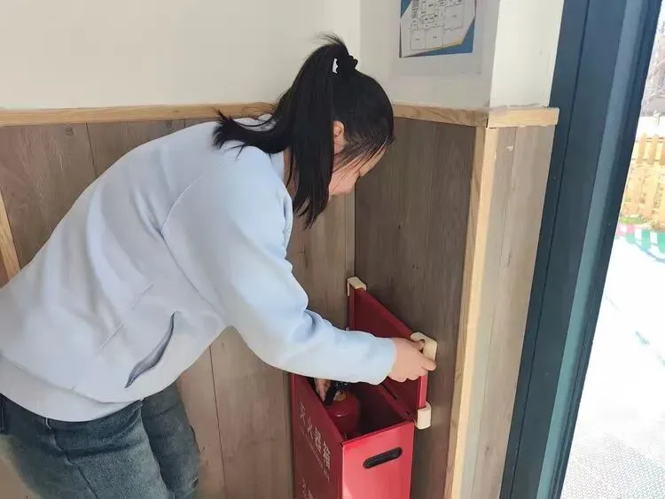 险情发生后,班级保育员第一时间响应,熟练拿起灭火器奔赴起火点进行初期灭火处置;班主任迅速向园长上报火情,清晰准确传递险情信息。