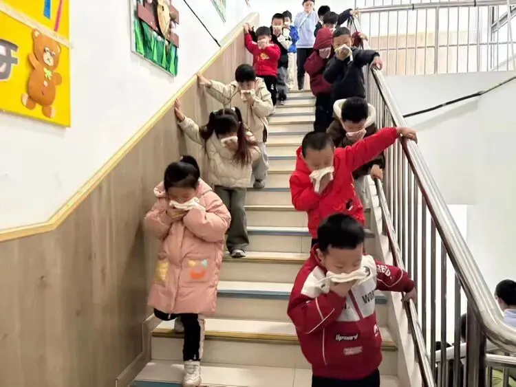 尖锐的警报声响彻校园,全园教师闻令而动,严格遵循消防安全疏散流程,带领幼儿用湿毛巾捂住口鼻、弯腰低姿,沿着预定安全路线快速、有序撤离至户外空旷安全区域,整个过程沉着冷静、有条不紊,充分展现了我园师幼良好的安全素养与应急反应能力。