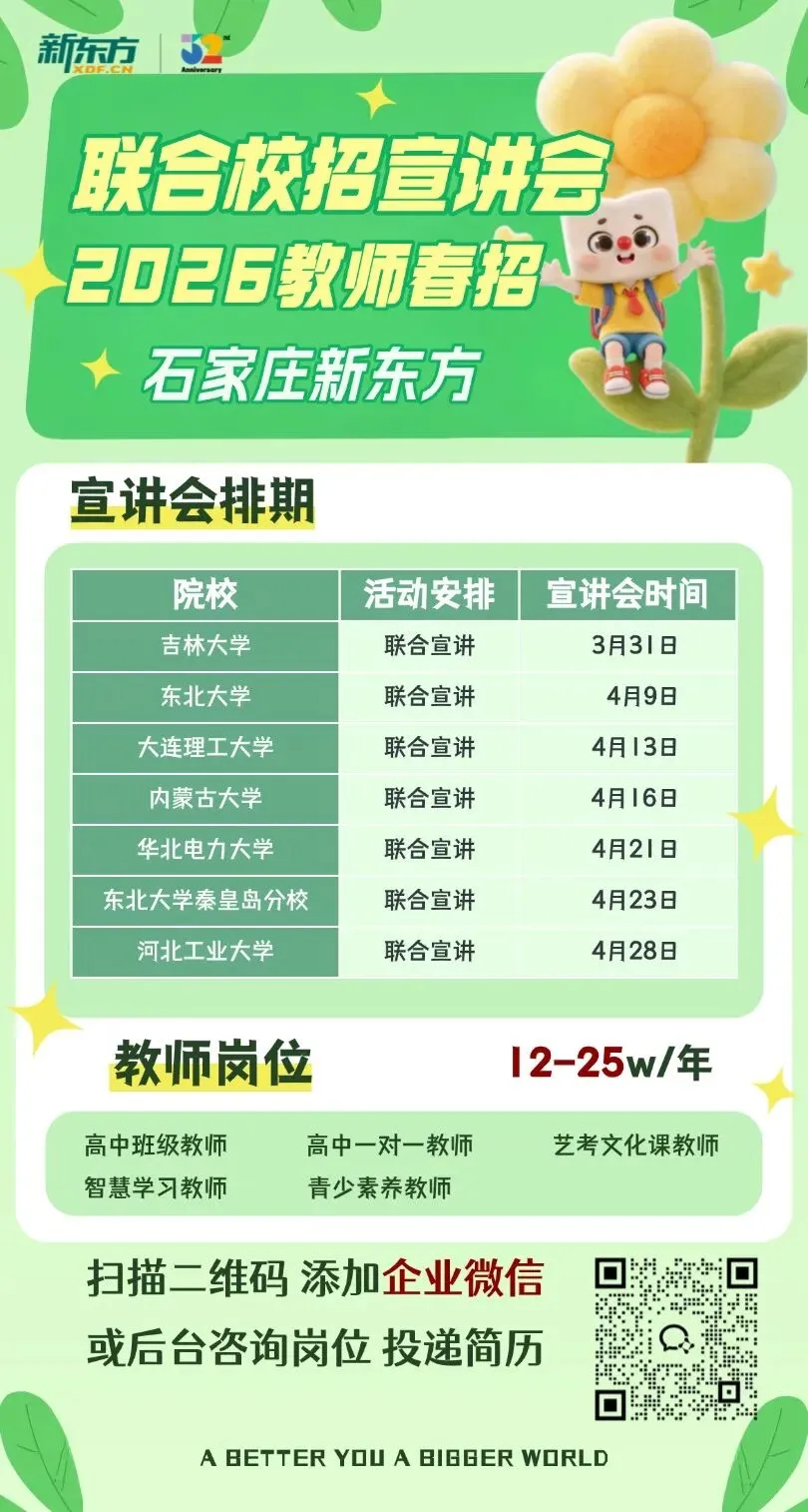 石家庄新东方 2026 教师春招 | 多校联合宣讲会排期出炉!