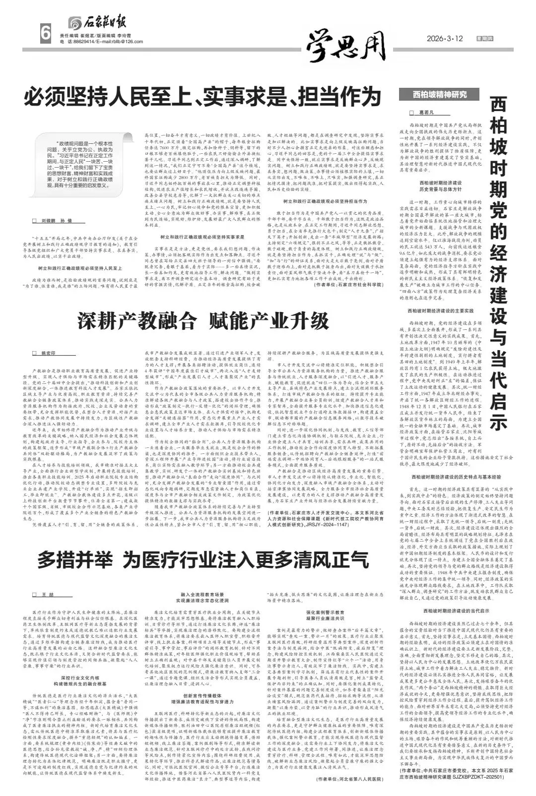 理论文章|《石家庄日报》“学思用”专版(3·12)