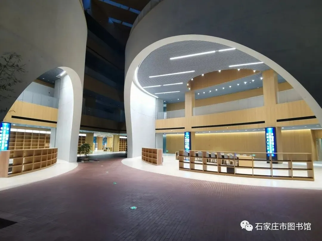 石家庄图书馆新馆坐落于石家庄市东北部正定新区,隆兴路以南,大临济街以西。规划占地2.4公顷,总建筑面积5.5万平方米(地下1层,地上4层),由4个半圆形的建筑单体构成,分别为:A馆、B馆、C馆和D馆。