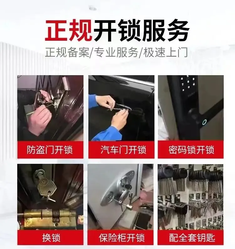 🔓 家庭开锁:防盗门、卧室门、保险柜门等开锁服务🚗 汽车开锁:汽车门锁开启、车钥匙遗失应急开锁🔑 锁具更换:更换老旧锁芯、防盗门锁具升级、安装高安全锁具📲 智能锁服务:指纹锁、密码锁、感应锁的安装、调试与维修🧰 应急开锁:24小时快速上门,任何时段都能为您解决锁具问题
