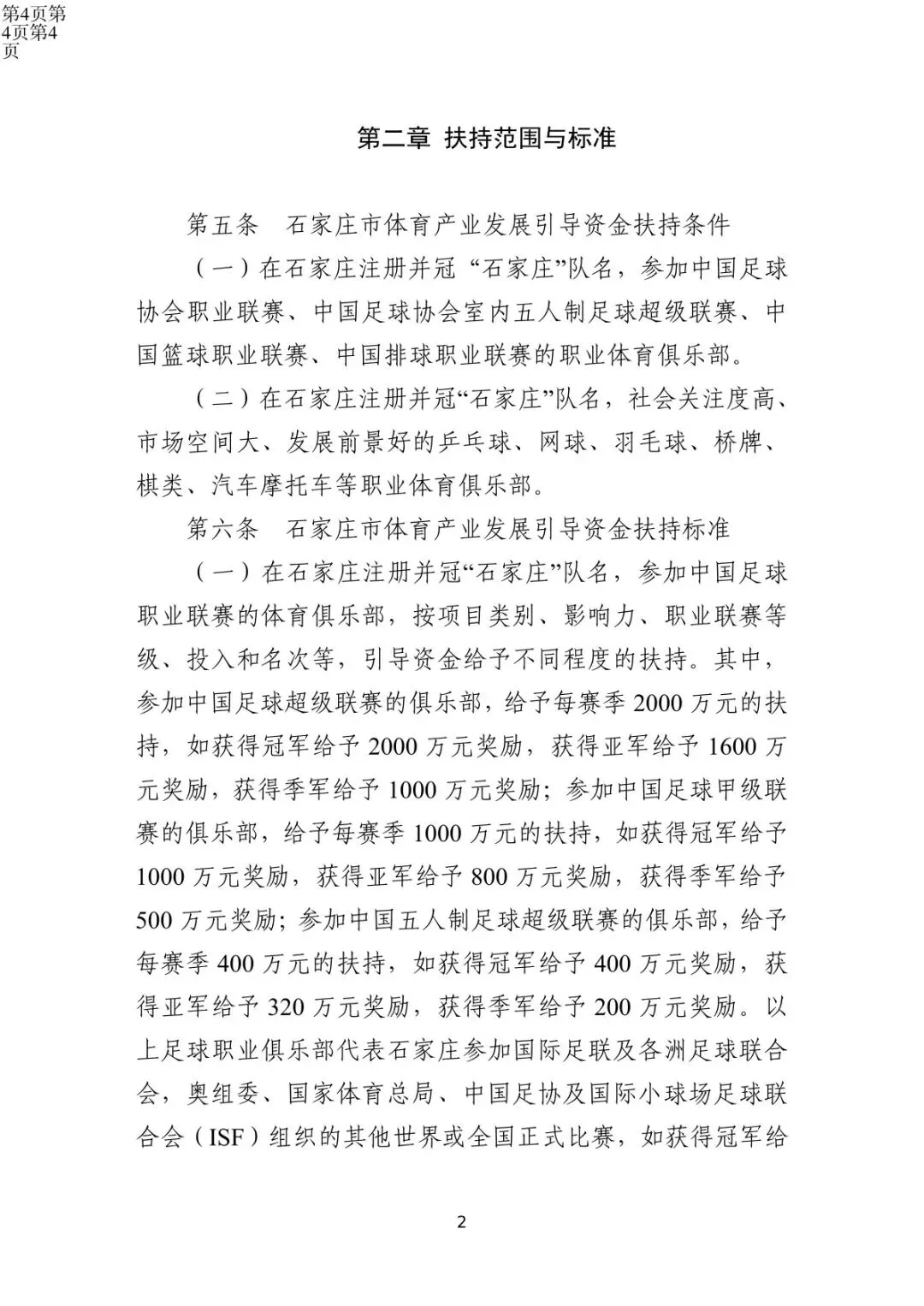 【扶持政策】《关于2025年度石家庄市体育产业发展引导资金拟扶持单位的公示》(中甲功夫足球俱乐部每赛季给予1000万元扶持)