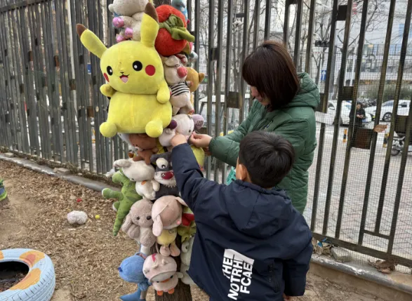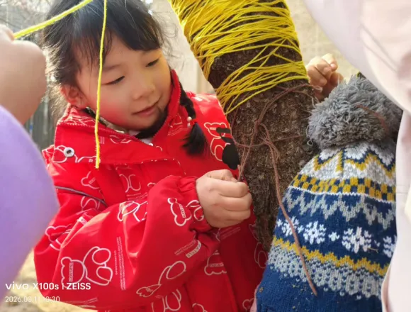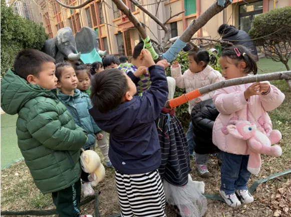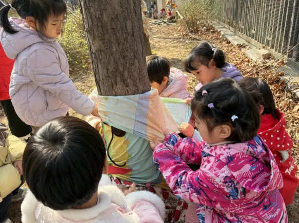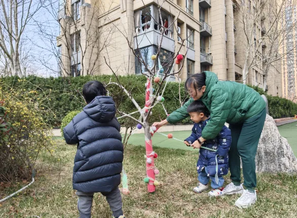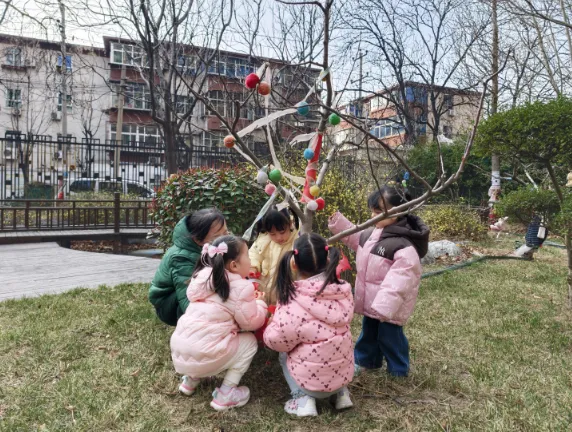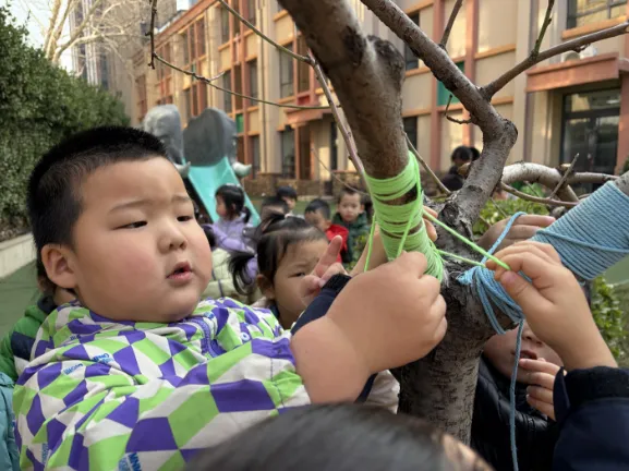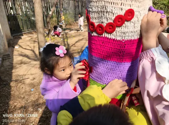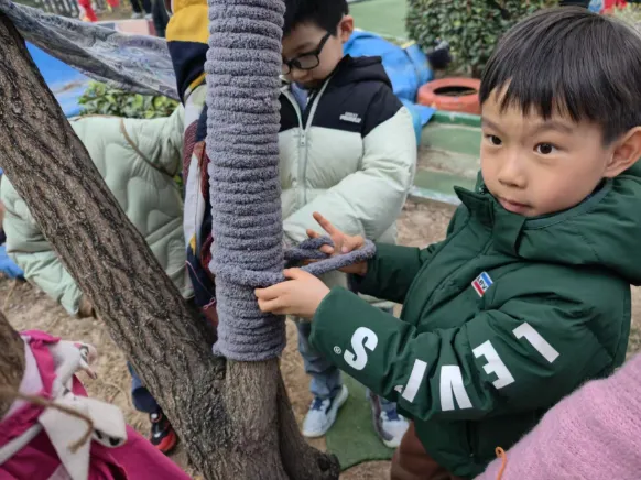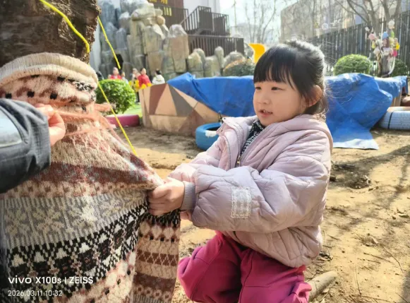 暂别寒冬,缕缕春风催生绿意,护绿小使者也纷纷带上了自己的工具,为大树脱去过冬的衣物,还和同伴一起交流“护绿心得呢”!