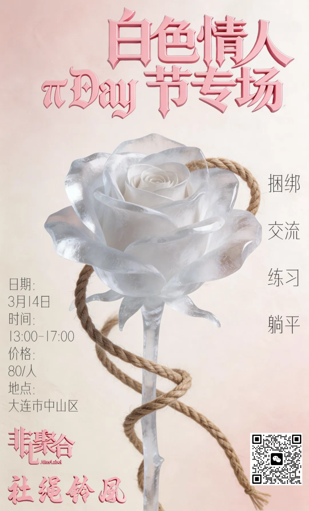 📍𝗧𝗜𝗔𝗡𝗝𝗜𝗡·#茧境空间 2026年3月14日 周六 ❗️ The White Partner. —专场沙龙 ⫸ 活动时间:15:00-19:00⫸双人218元(本次活动只接受组队报名) ⫸绳缚 长鞭摄影 飞镖 分享 社交 鸡尾酒 ⫸本期新手教学:TK与本结 ⫸本期吊缚分享:多点吊位逻辑分析 ⫸绳缚体验两名 ⫸飞镖比赛(按组排名 前三名赠送下次活动门票及德芙巧克力一盒)