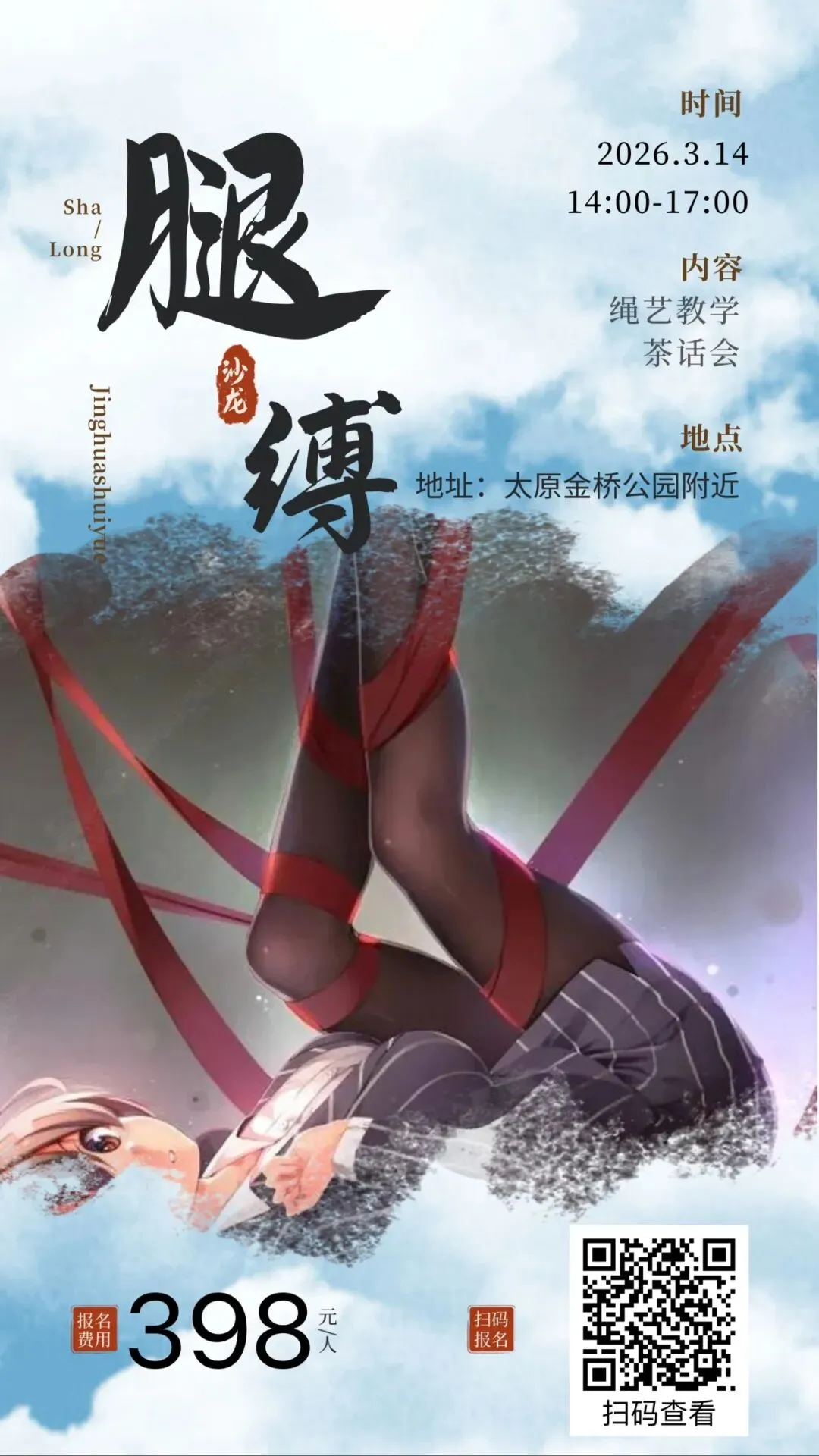 镜花水月美缚实验室邀您一起参加【腿缚】活动。本次活动的主题为现场体验·交友茶话会。 地点:太原金桥公园附近。 时间:2026.3.14 14:00-17:00 名额有限,报名从速