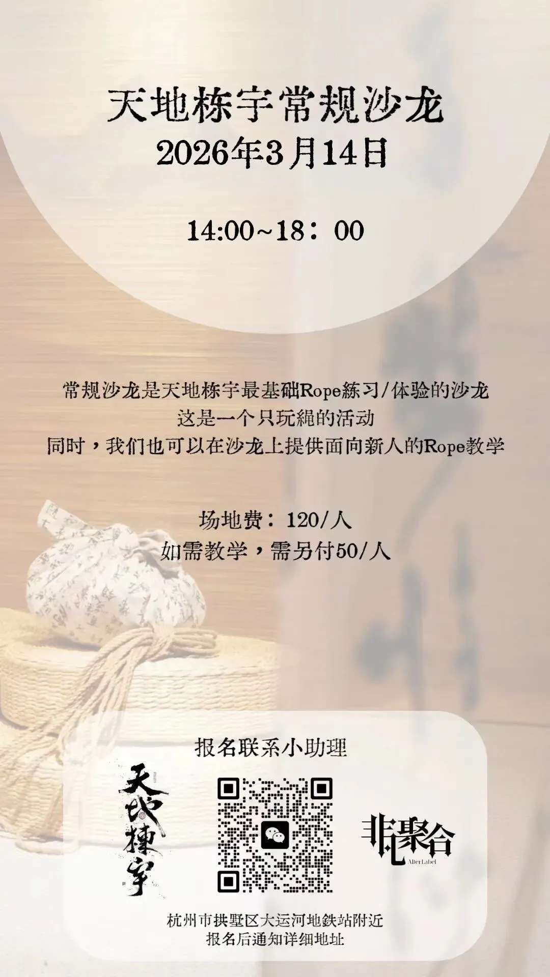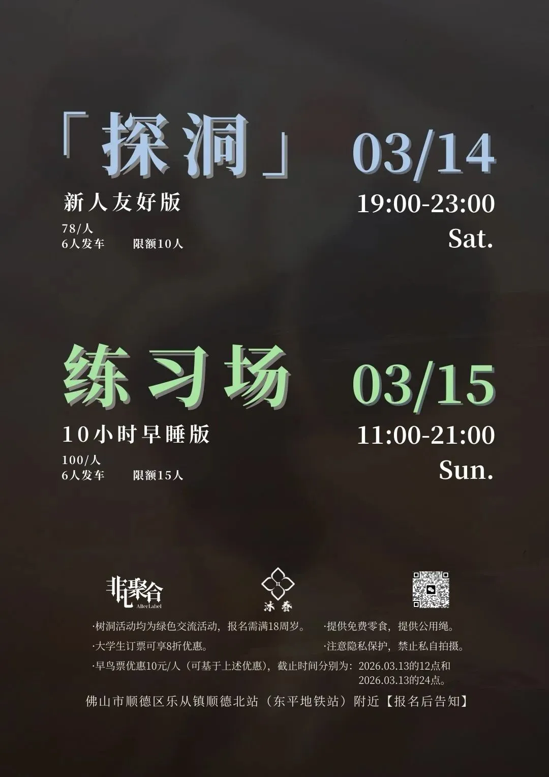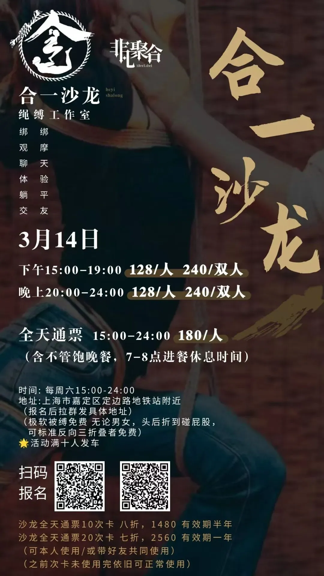 你是否—— 👉🏻对绳缚心动已久,却迟迟不敢迈出第一步? 👉🏻好奇一场玩耍如何开始,却不知如何开口? 👉🏻想结识同好,却总在圈子边缘徘徊? 👉🏻渴望来树洞打卡,却怕自己无法融入? 【活动信息】 ▪️ 03.14(周六)19:00-23:00 | 探洞 · 夜晚场 适合想轻松感受氛围、开始尝试的新朋友。 ▪️ 03.15(周日)11:00-21:00 | 十小时早睡版练习场 适合想持续练习、慢慢精进的朋友。 ✨让所有忐忑,化作一场温柔的相遇✨ ✨一年之计在于春,快来练习啦!✨ ✨我们不见不散✨