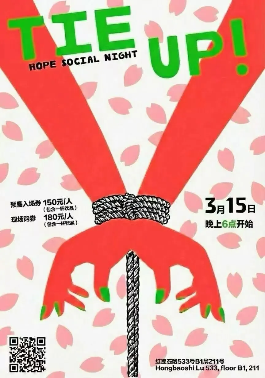 本周日晚上,上海老牌绳缚活动Tie up回归,机会难得欢迎新老朋友前来相聚。
