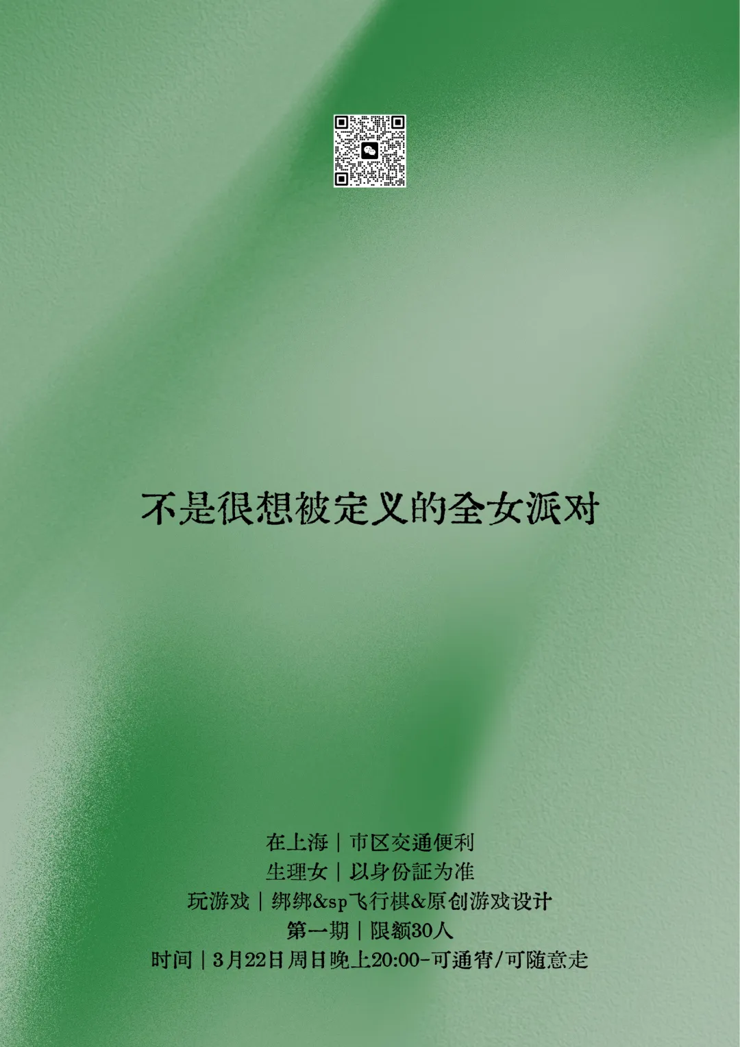 3月22日周日晚,第一期全女主题聚会,好玩的原创游戏设计等你解锁。春天来了还没有姐姐的妳,真的不来玩吗!