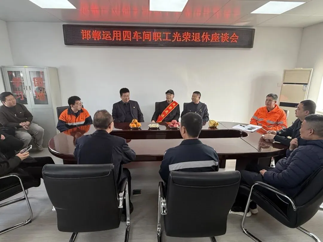 邯郸运用四车间召开职工光荣退休座谈会。车间干部职工共同为退休老职工送上暖心祝福,感谢他多年来扎根一线的辛勤付出与突出贡献,祝愿他退休生活舒心顺遂、喜乐常伴、阖家安康。(通讯员:何强)