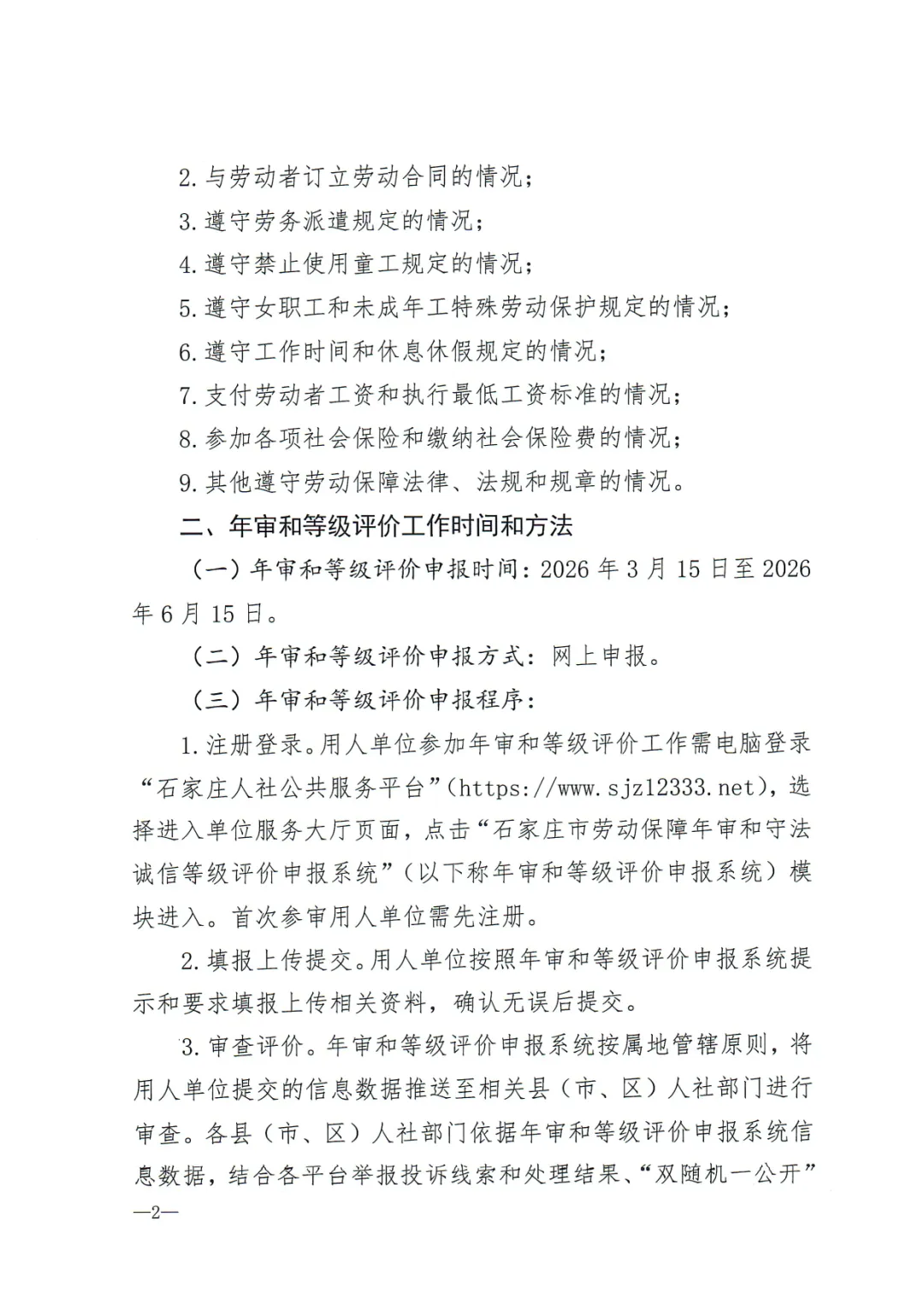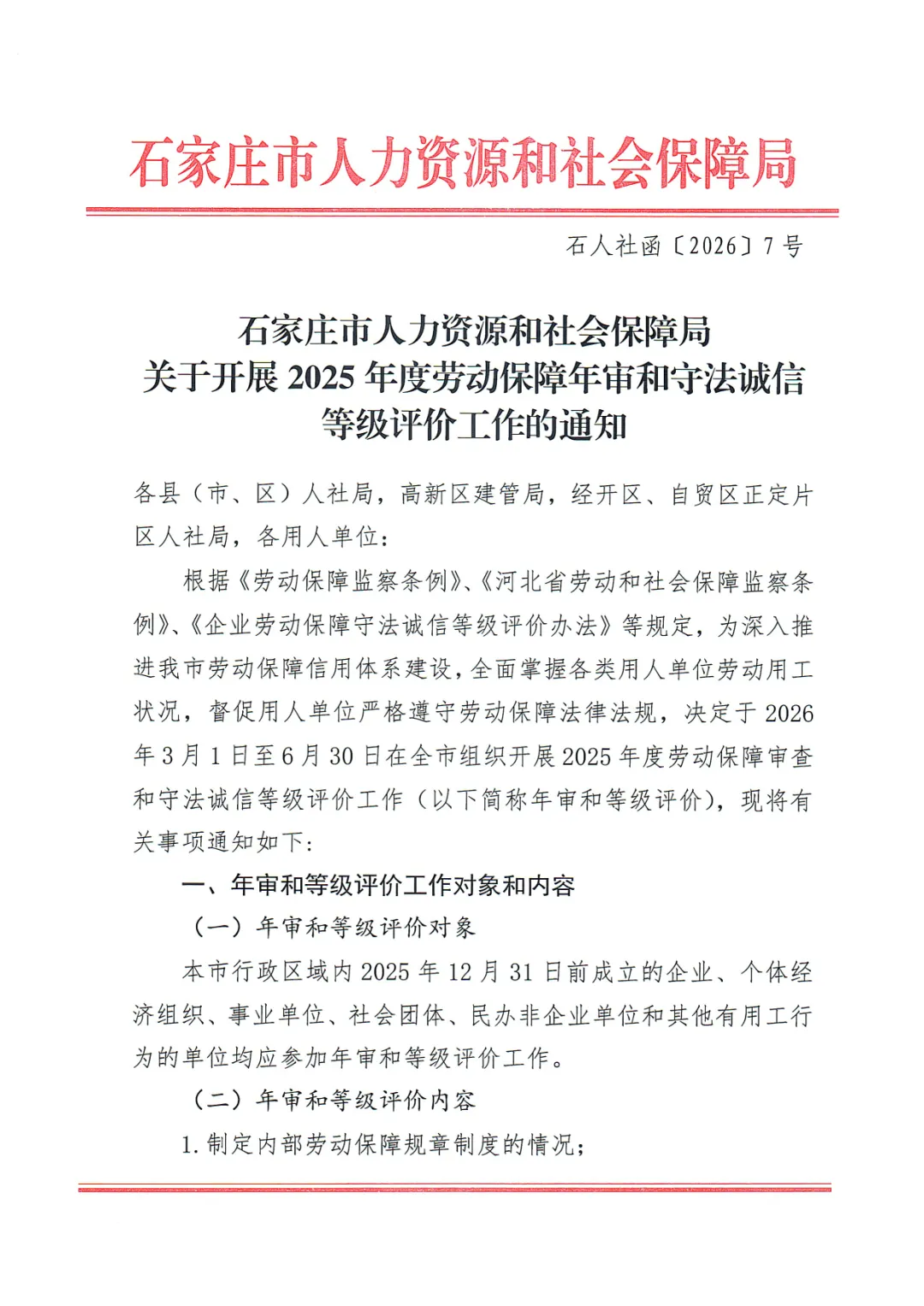>石家庄市人力资源和社会保障局关于开展2025年度劳动保障年审和守法诚信等级评价工作的通知