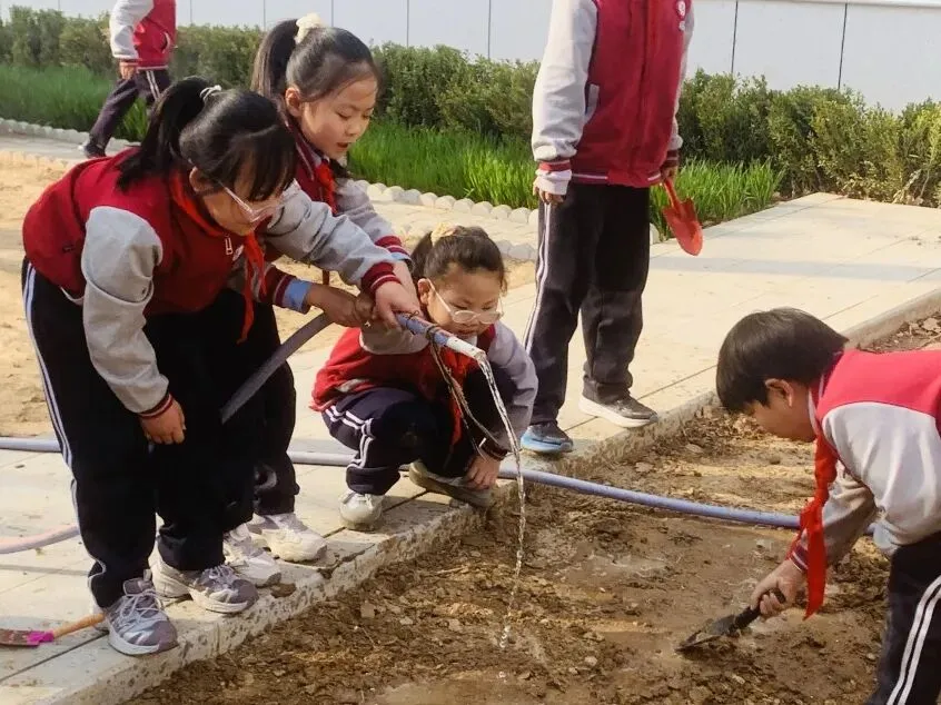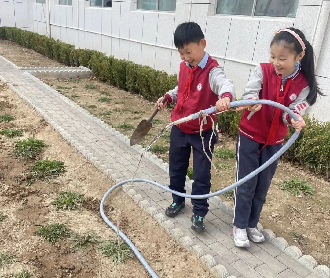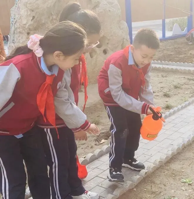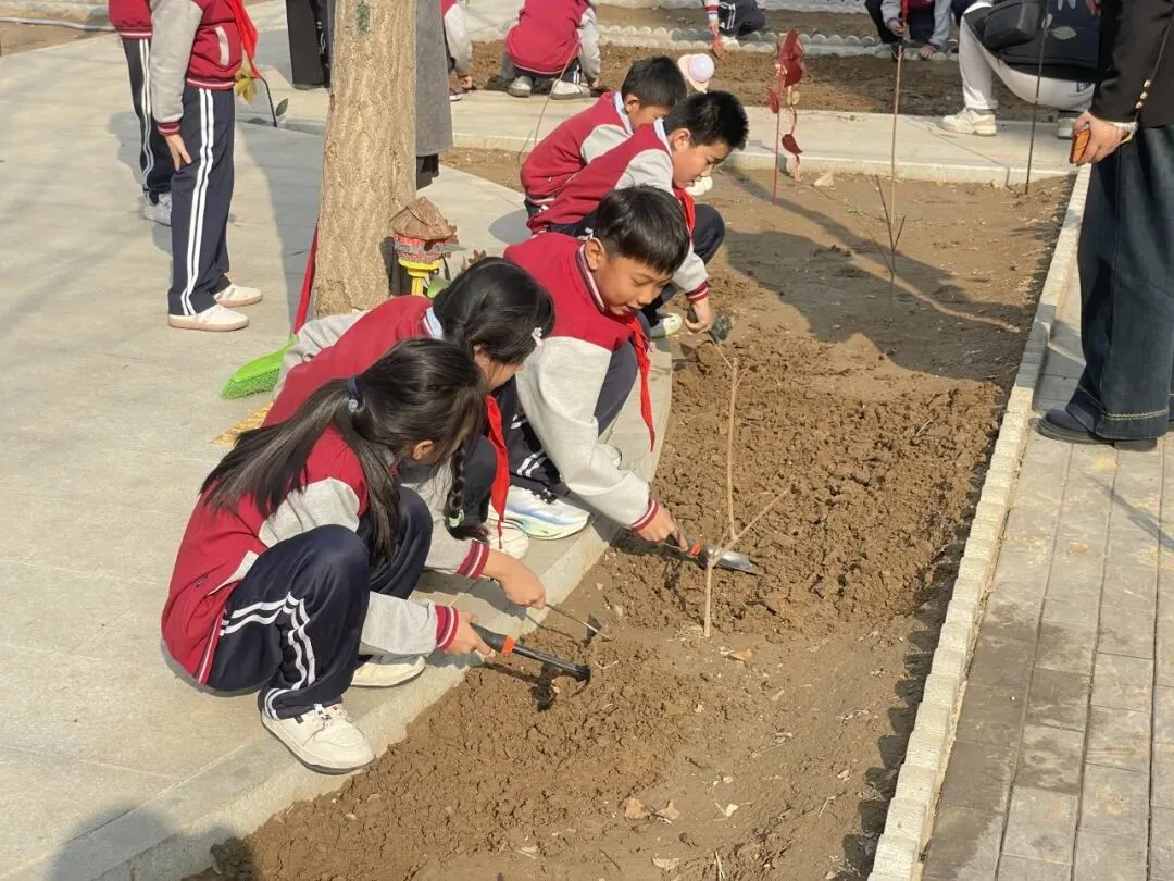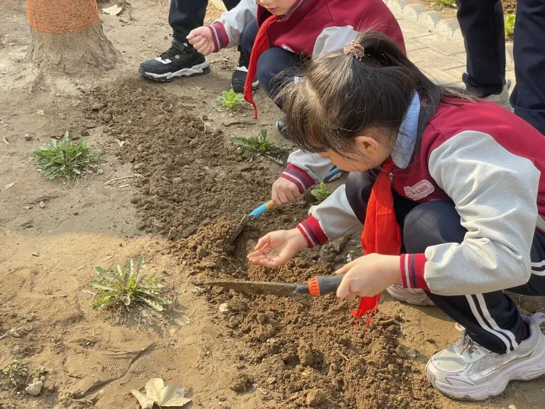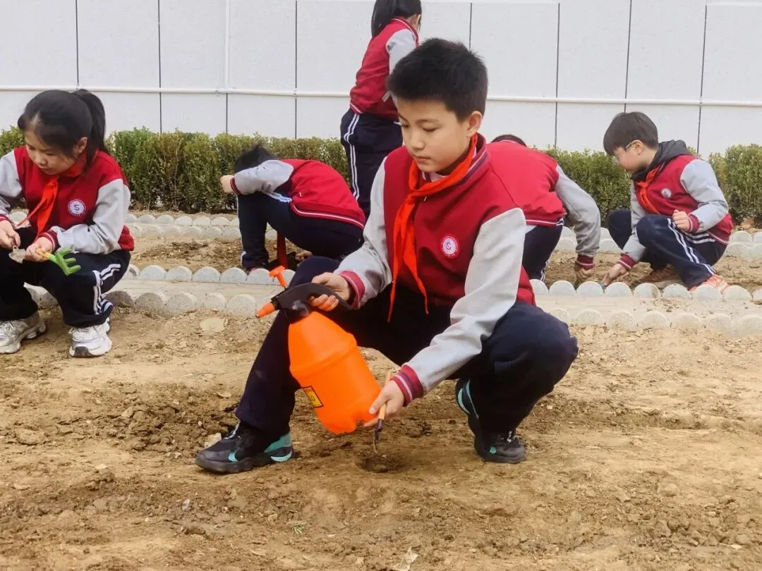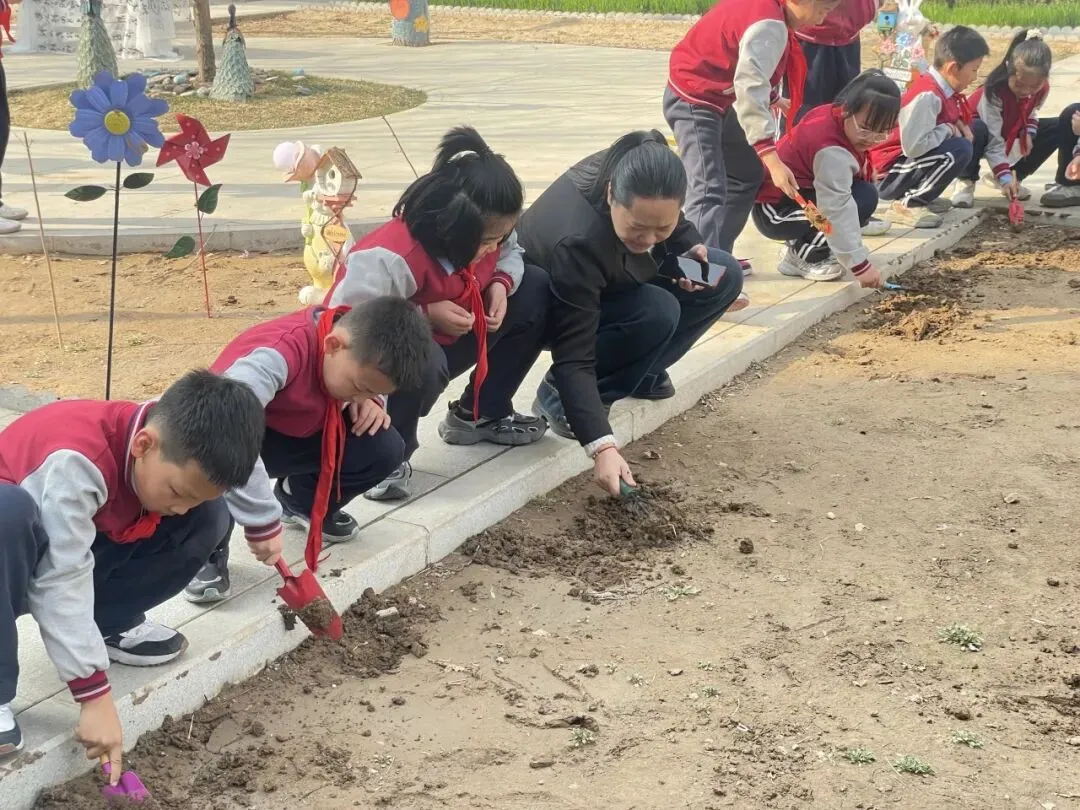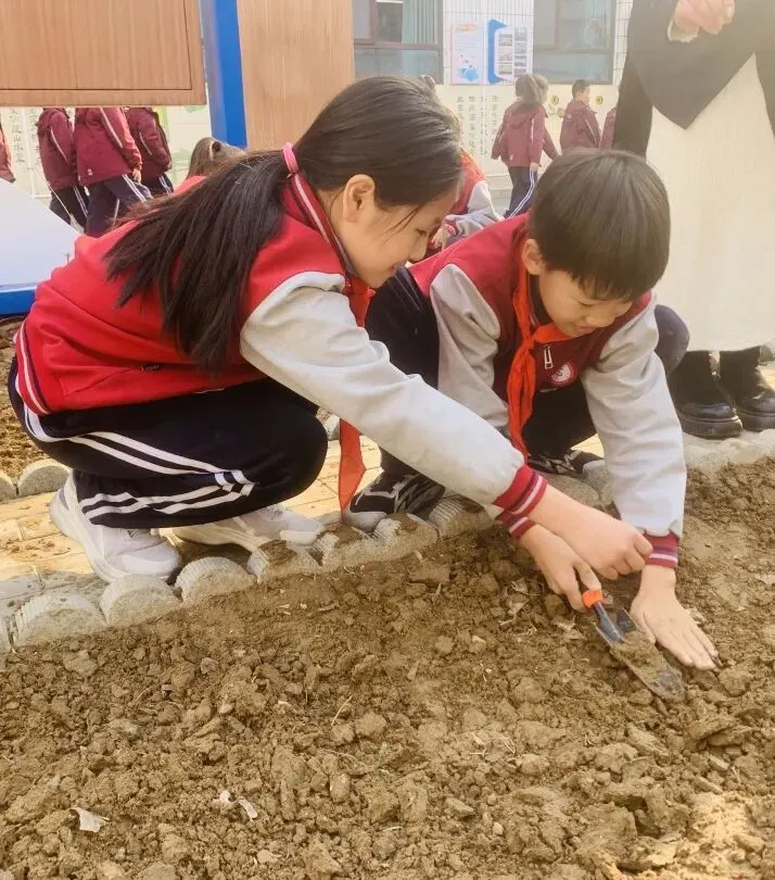 孩子们手持小工具,分工协作,在属于自己的“责任田”里种下小苗、播撒花种,亲手为校园添上一抹新绿,也在心中种下环保、勤劳、坚持的美好种子。