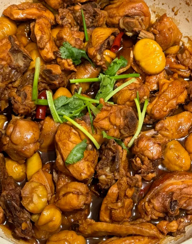 说一下板栗炖鸡的做法,很简单但讲究。先把栗子划口煮开,去壳备用。鸡块下锅煸到微黄,放姜片、料酒、酱油,添水小火炖,最后丢入栗子再炖十来分钟,汤汁收一点,栗香就出来了。
