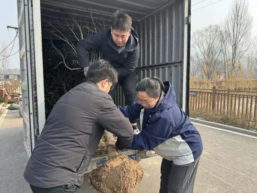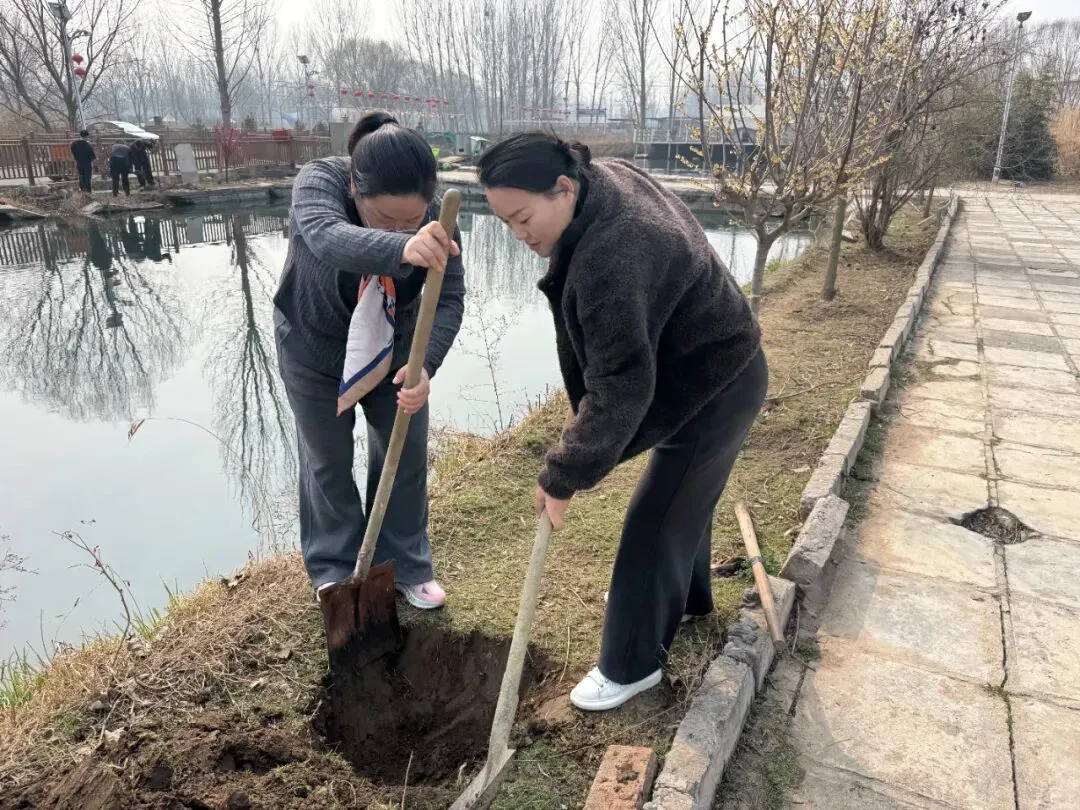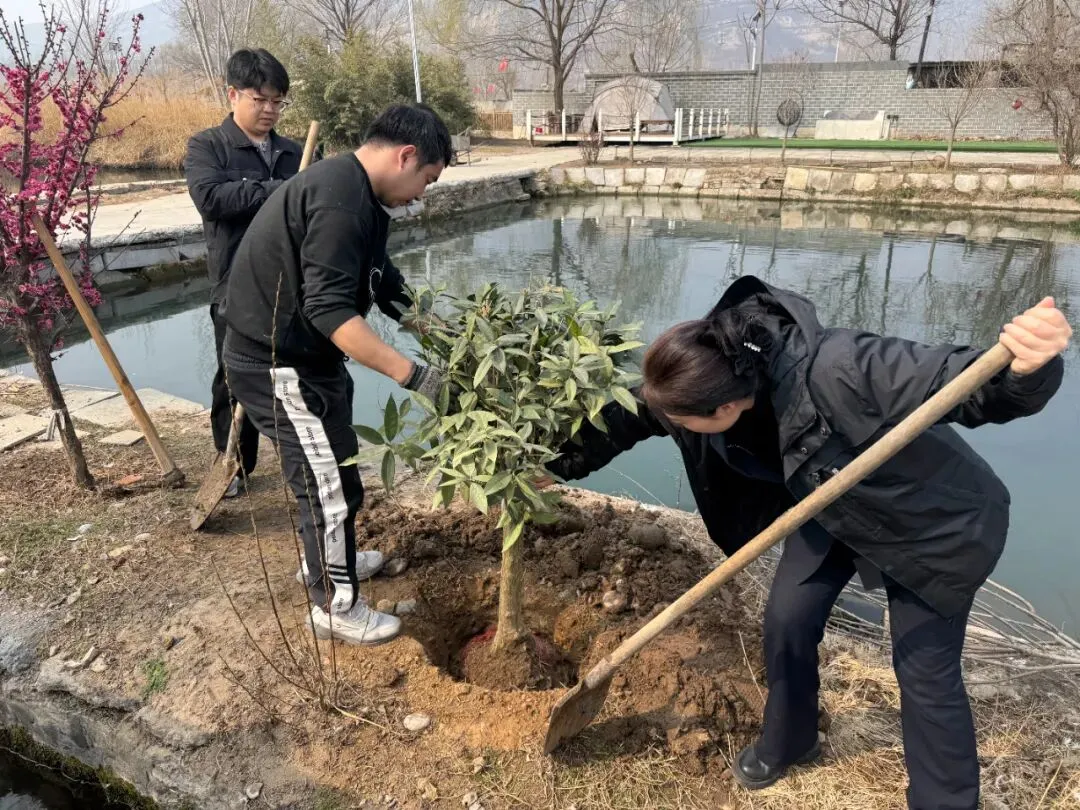 活动现场,员工们热情高涨、分工协作,挥锹铲土、扶苗填坑、提水浇灌,各个环节井然有序。经过辛勤劳动,数十株新栽树苗迎风挺立,为初春大地增添勃勃生机。
