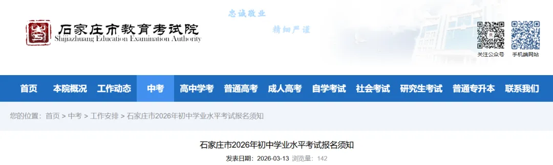 最新发布!石家庄市2026年初中学业水平考试报名须知