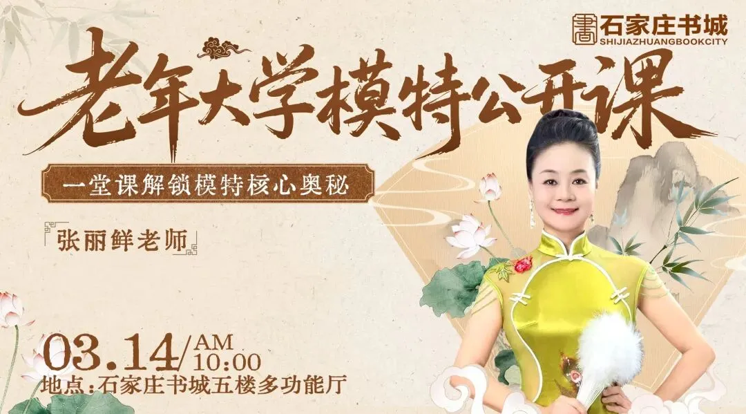 3月14日上午10点,资深模特教师张丽鲜将亲临石家庄书城五楼多功能厅,带来模特公开课。本次课程现场报名参与,名额限50人,先到先得,欢迎广大中老年朋友前来体验!