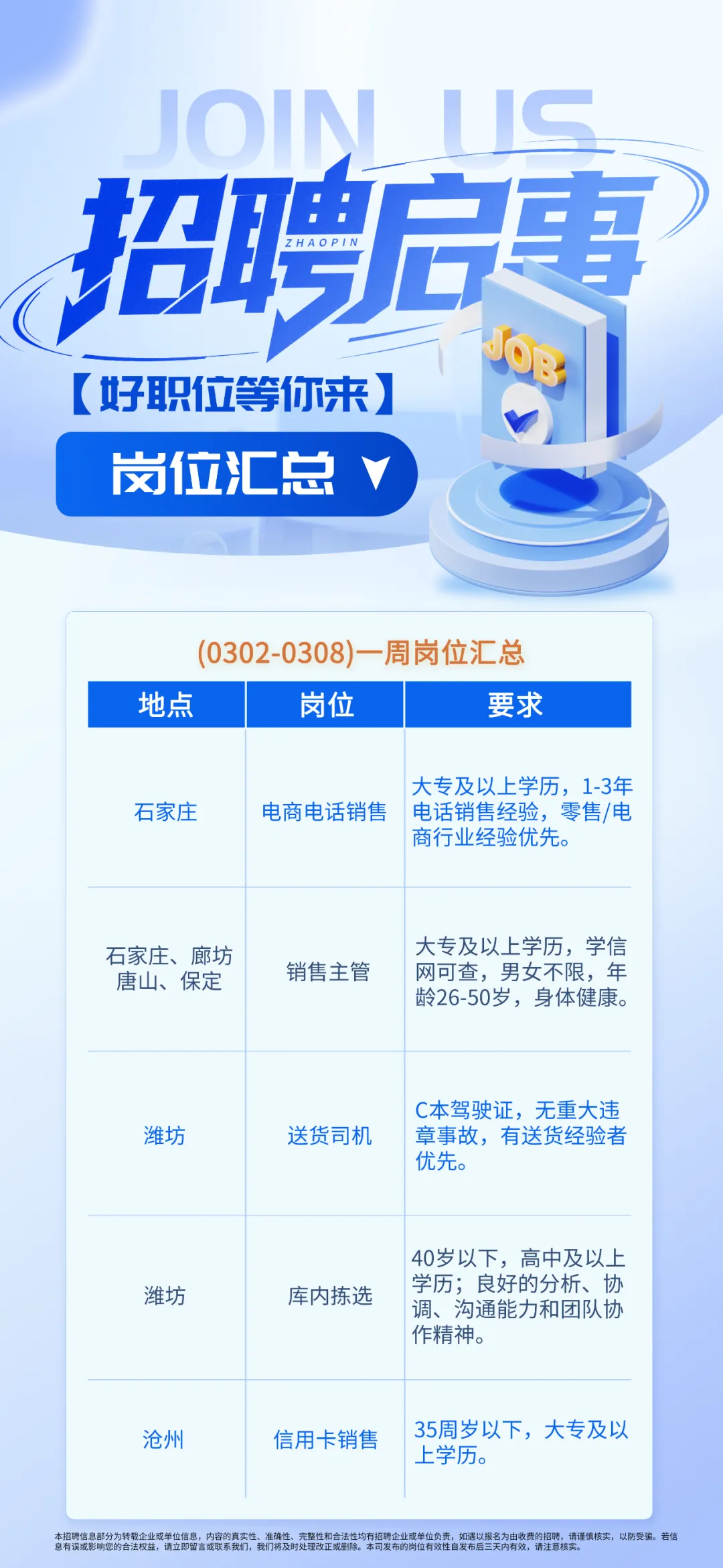 【优岗汇总】石家庄、潍坊、衡水等多地一周岗位汇总