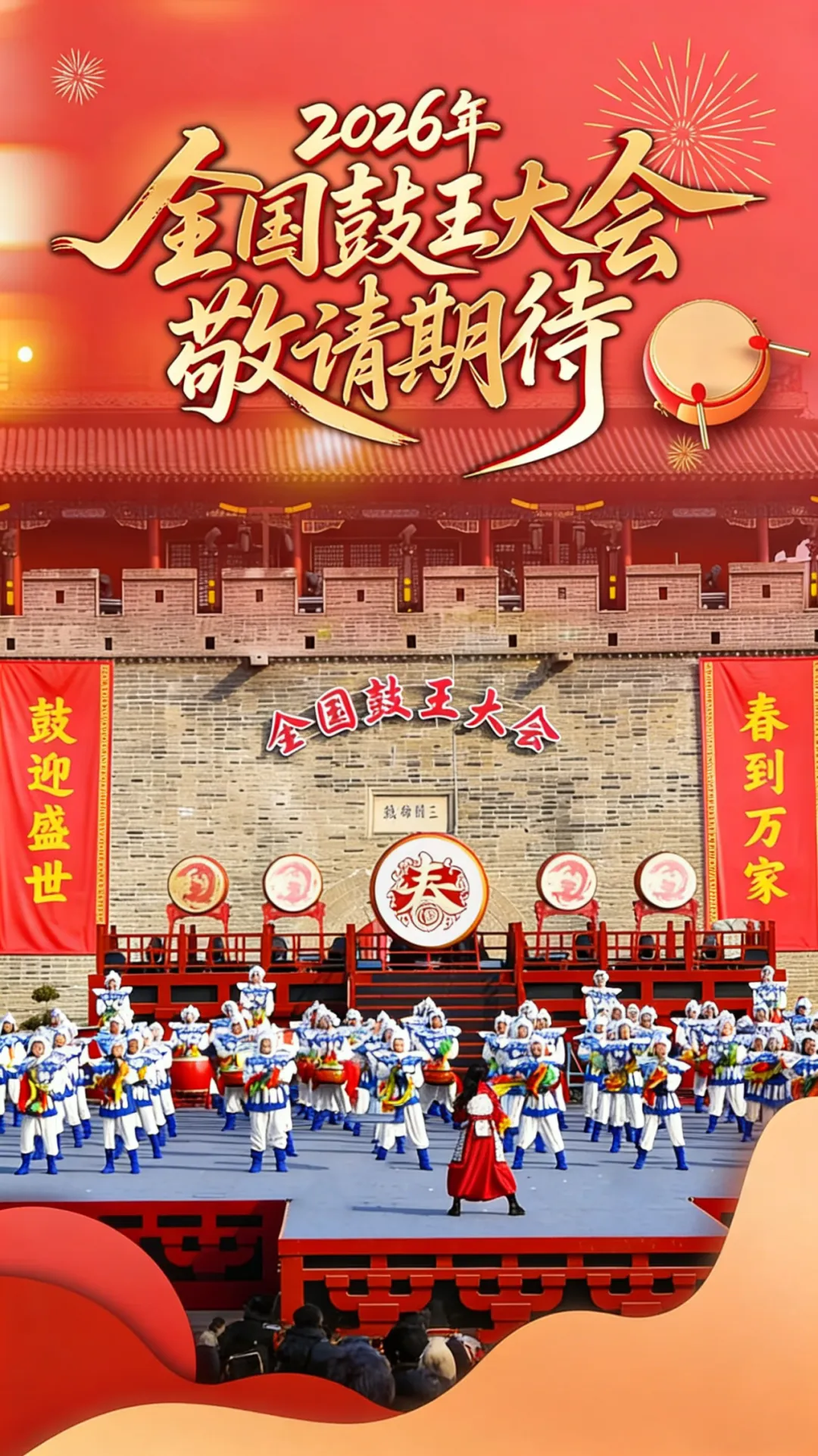 2026年全国鼓王大会将于3月15日在河北省石家庄市正定县古城瓮城内正式举办。本次大会汇聚全国各地顶尖鼓乐队伍,各队伍同台展演交流,尽显中华传统鼓乐文化魅力,为市民与游客呈现一场震撼的鼓乐盛宴。