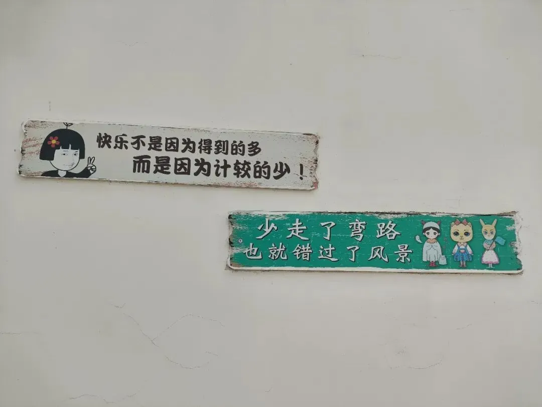 园区内随处可见粉墙黛瓦和马头墙。仿若穿梭了时空隧道,到达了安徽一般。墙上的标语也深得人心,为人父母,总希望自己的孩子少走弯路,可以站在我们的肩膀上看到更顺畅更广袤的世界,殊不知"少走了弯路,也就错过了风景",所以不要怕孩子走弯路,人生谁有谁的风景。还有"快乐不是因为我们得到的多,而是因为我们计较的少",的确如此:一箪食,一瓢饮,在陋巷,回也不改其乐也;住大房子、开好车、生活富裕,也不一定比回快乐很多,困住我们的从来都不是这方天地,而是自己的心。