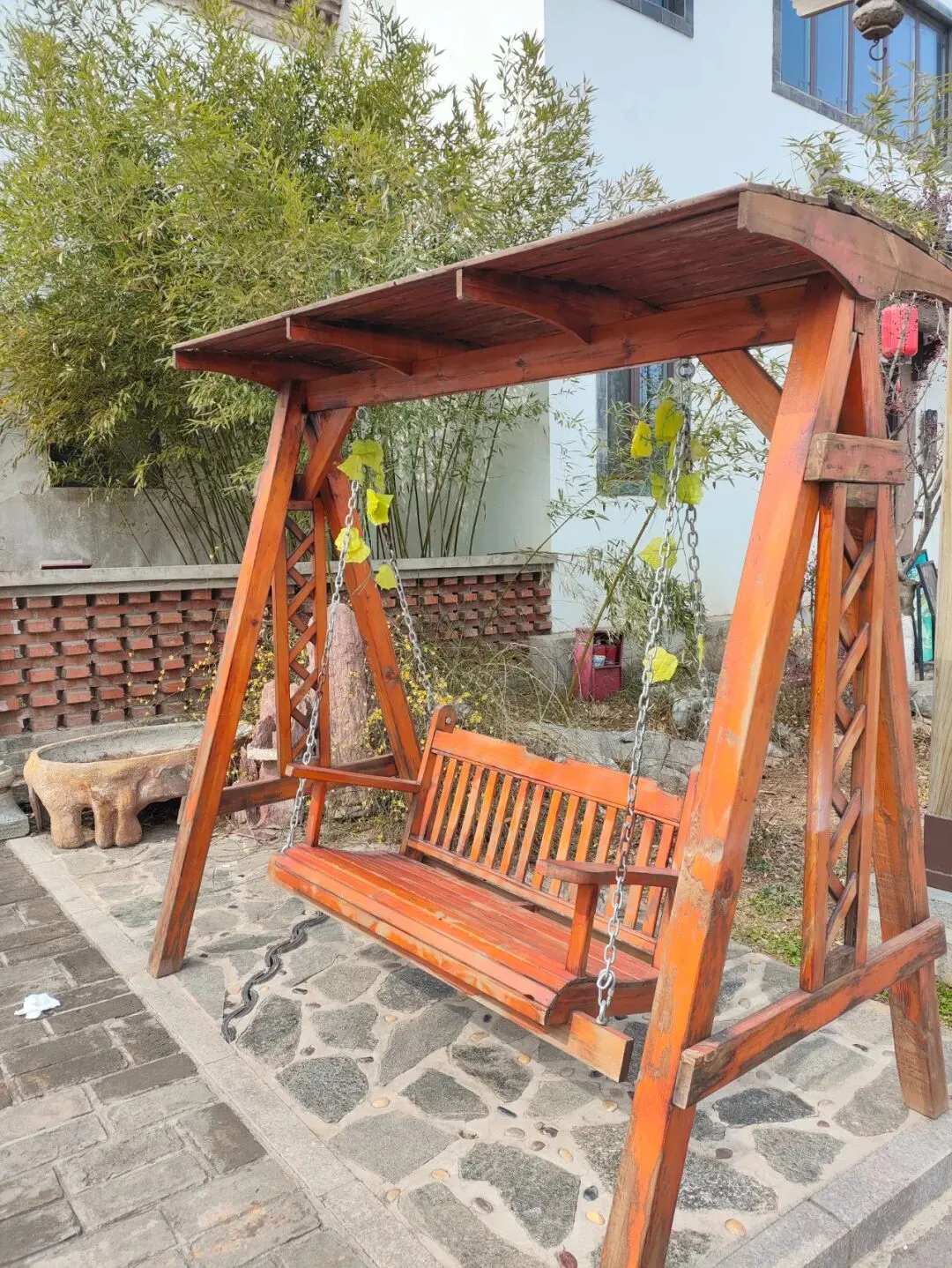 就连园区内的饭店-耽和面,也是采用和园区统一的风格,保持了整体的结构面貌。抬头可见的匾额,房梁角的雕花和鎏金都吸人眼球。饭要常吃,面要常见,人间烟火味,最抚凡人心。吃了一碗紫菜混沌汤,温暖了我的胃,抚慰了我的心,坐在门口的秋千上,温暖的阳光包围着我,悠闲地荡起了秋千,难得这片刻的惬意。