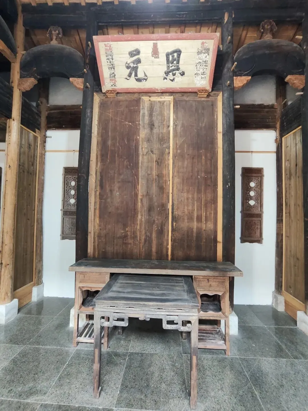《恩元》匾额,"恩元" 即恩贡生第一名,是清代科举制度的特殊功名。恩贡是朝廷在庆典(如皇帝登基、万寿、大捷)时额外加授的贡生名额,“元” 代表该批次恩贡中的第一名。常见悬挂于古民居大门上方,搭配深色木柱与老旧门板。