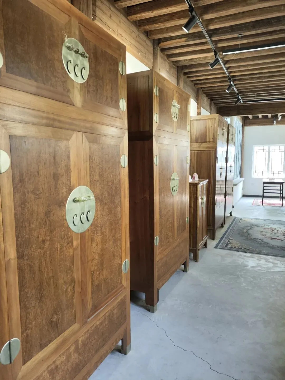 此木平时蜀难实见,能在这里亲眼看见,亲手摸到,也算是一种缘分。展出的家具价格昂贵,动辄几十万至上百万,有大料板的桌子,柜子,床,凳子等等,喜欢实木家具的朋友们可以在这里大饱眼福。
